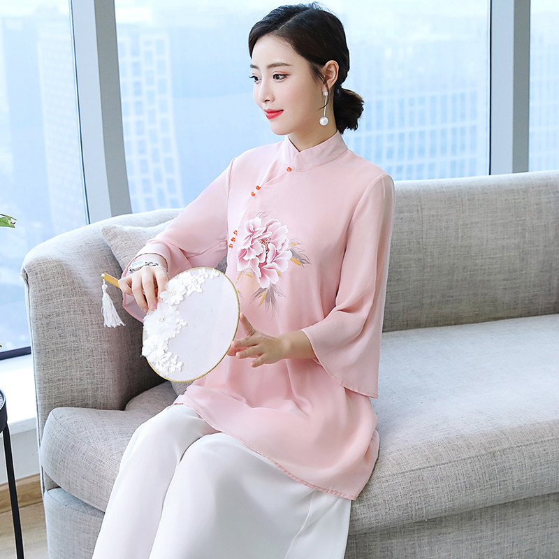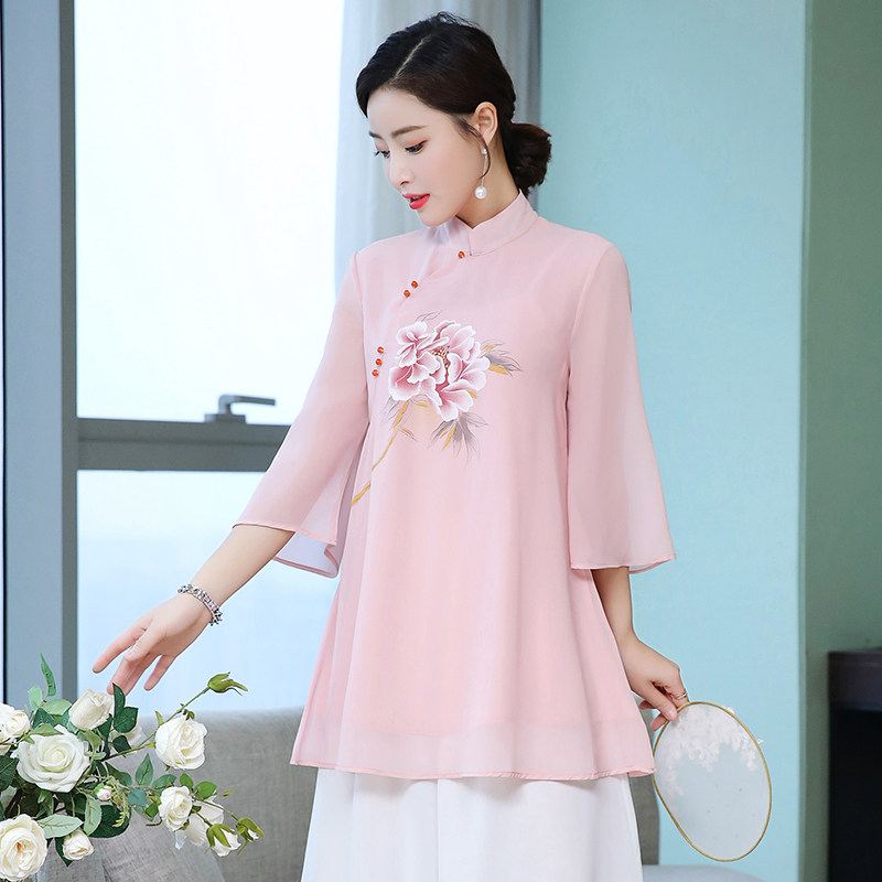 Летняя ретро летняя одежда, шифоновое этническое ципао, коллекция 2021, китайский стиль, облегающий крой, этнический стиль