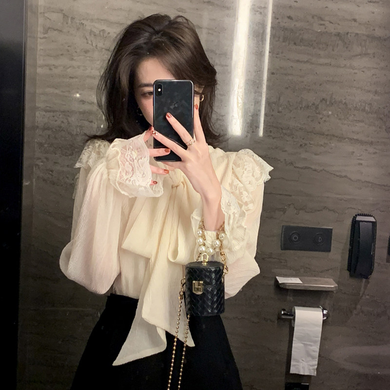 Осенняя элитная кружевная рубашка, французский стиль, в западном стиле