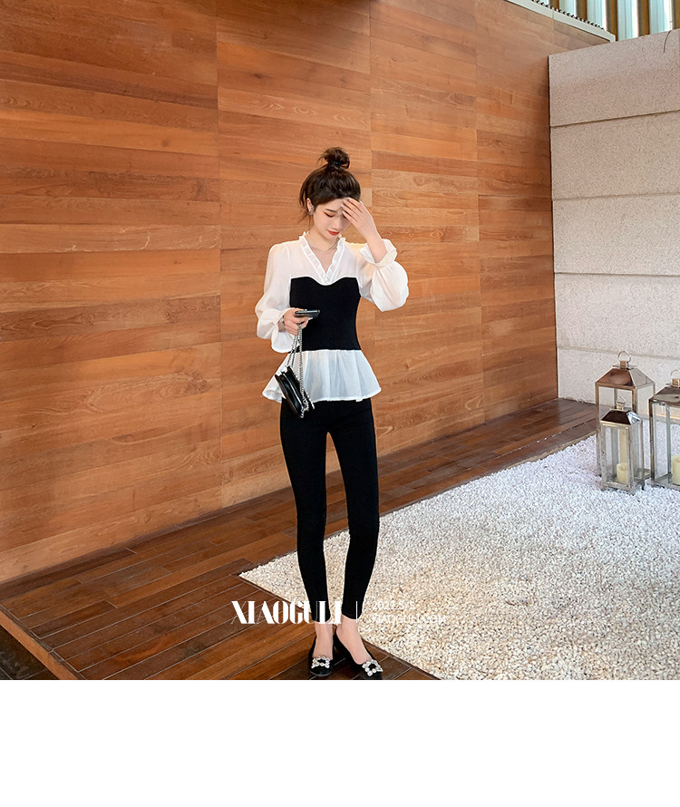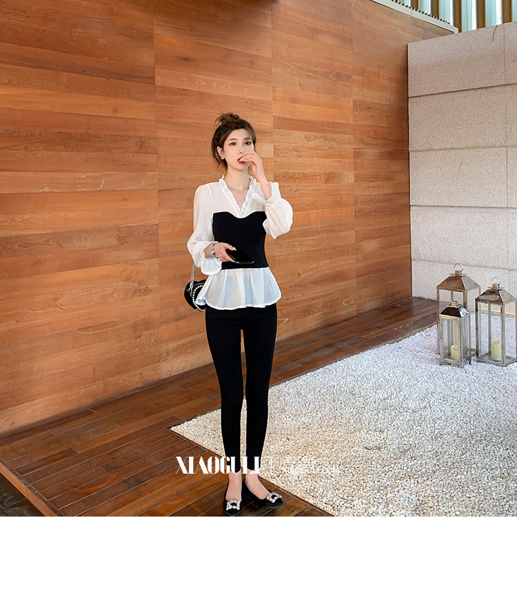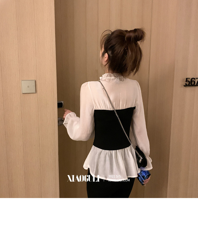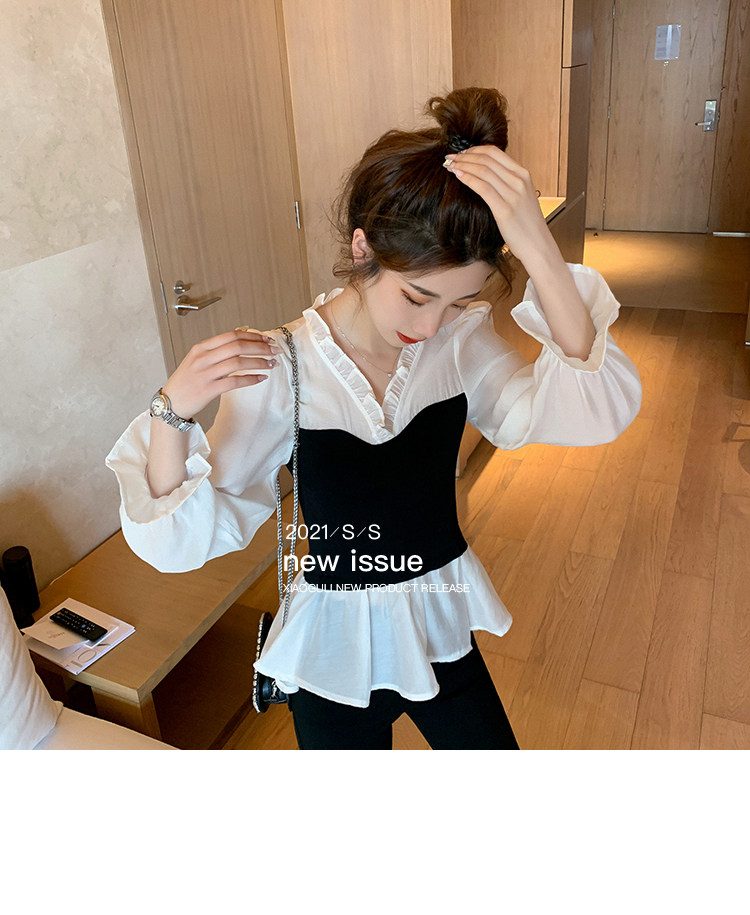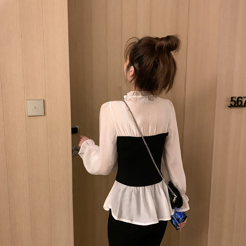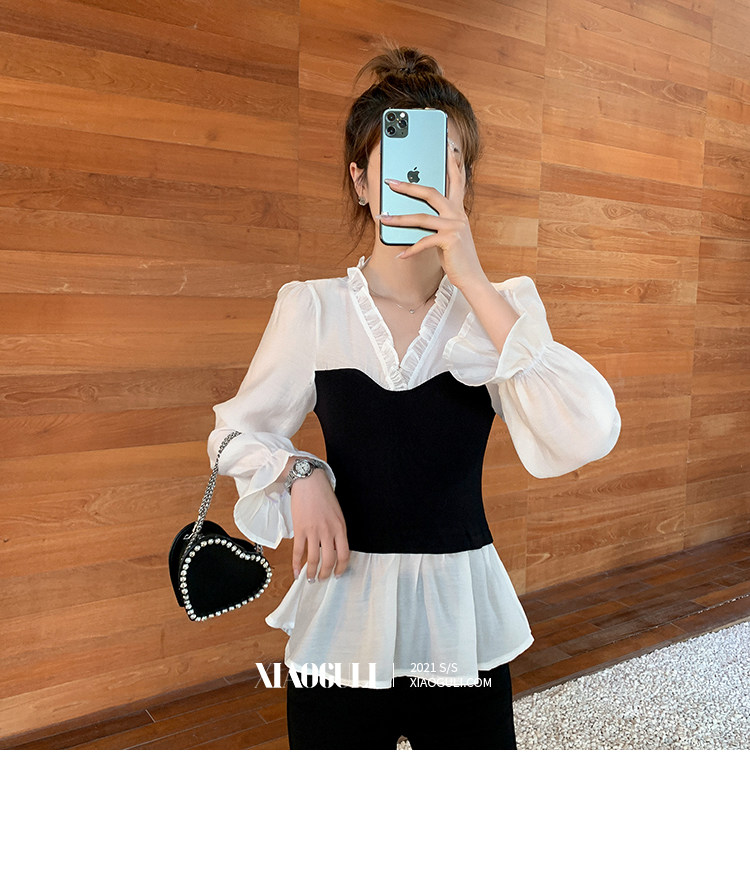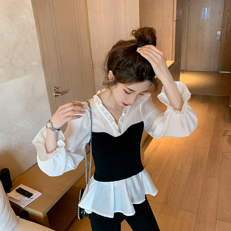 Шифоновый весенний приталенный корсет, лонгслив, коллекция 2022, в корейском стиле, V-образный вырез