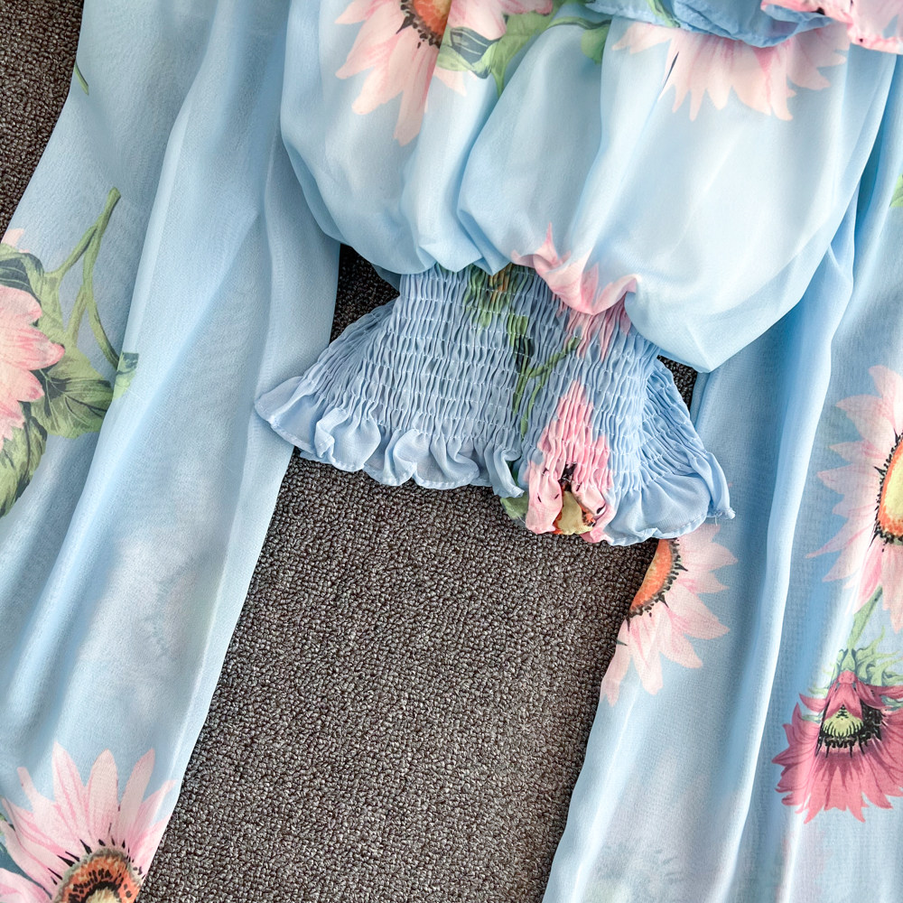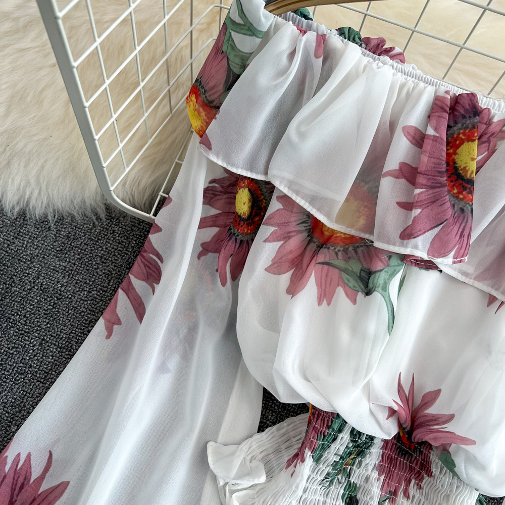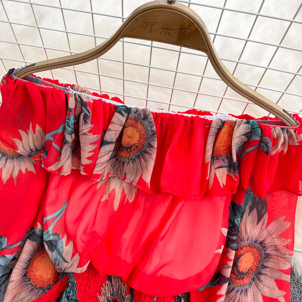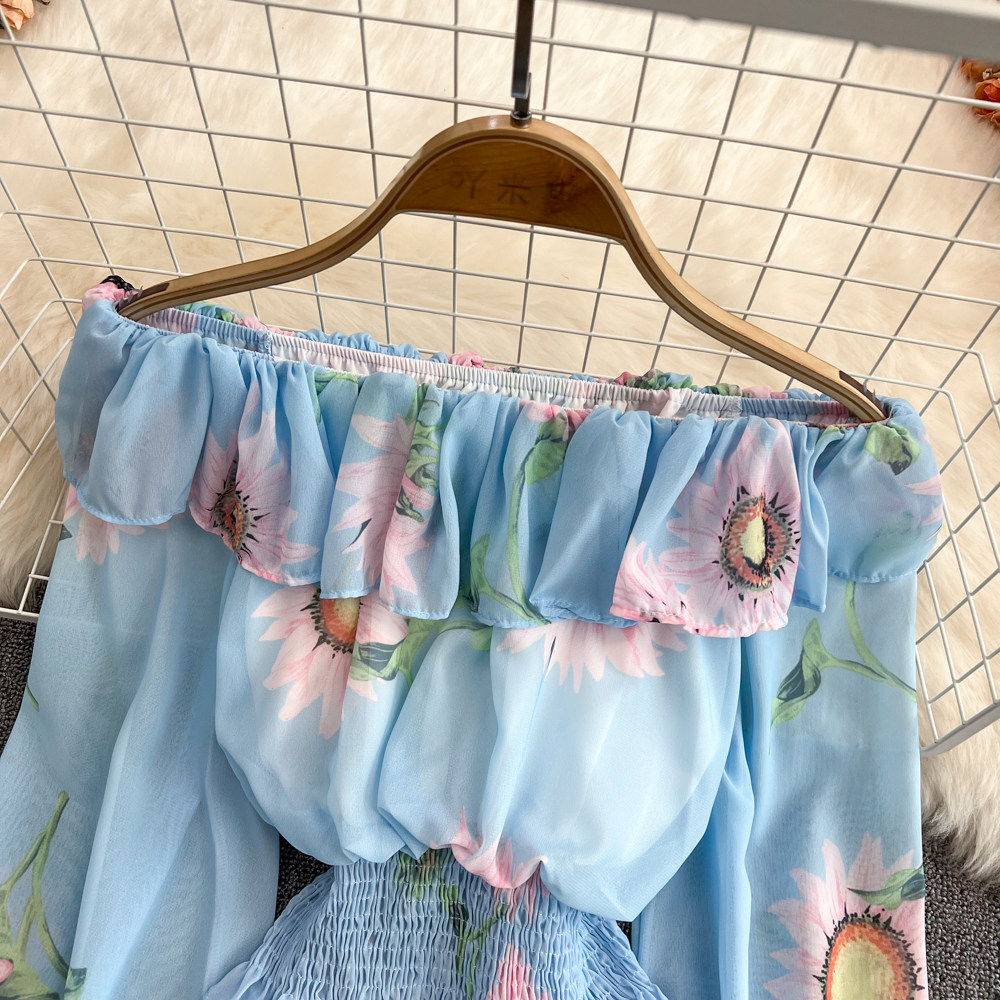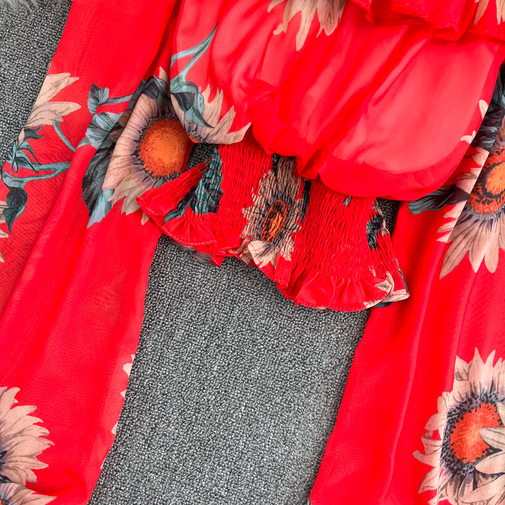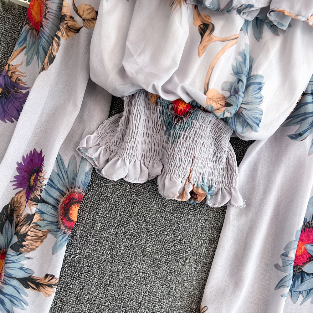 Шифоновый короткий корсет, весенний лонгслив, открытые плечи, шифоновый с принтом, в западном стиле