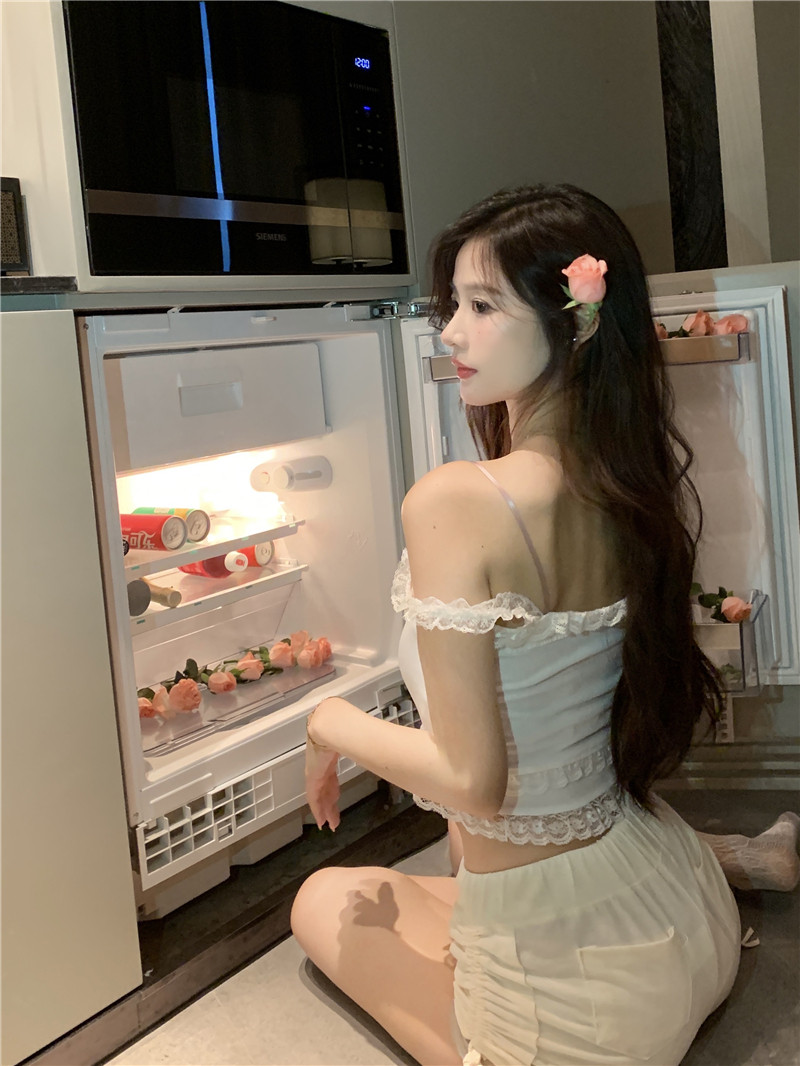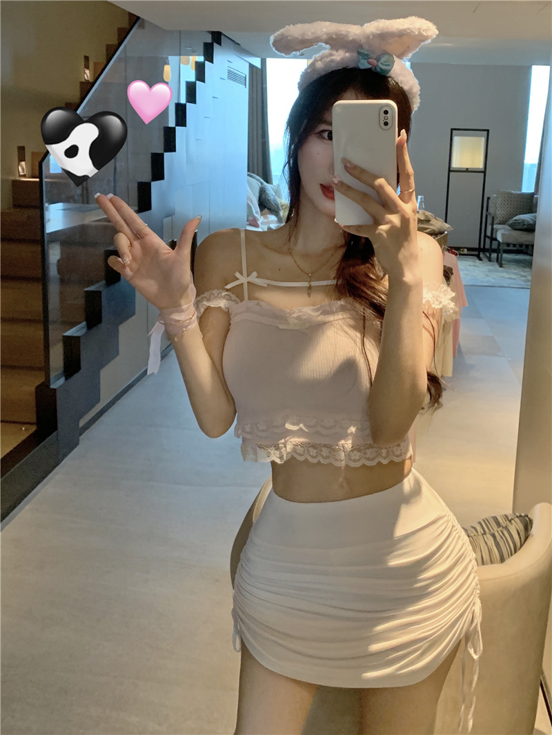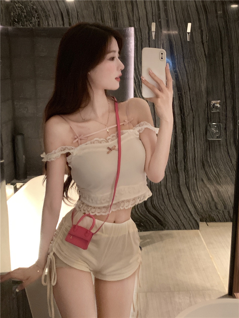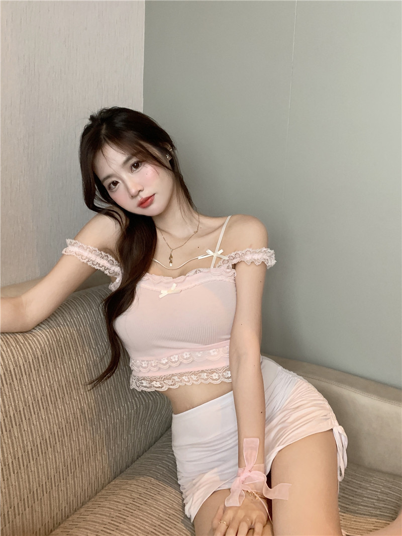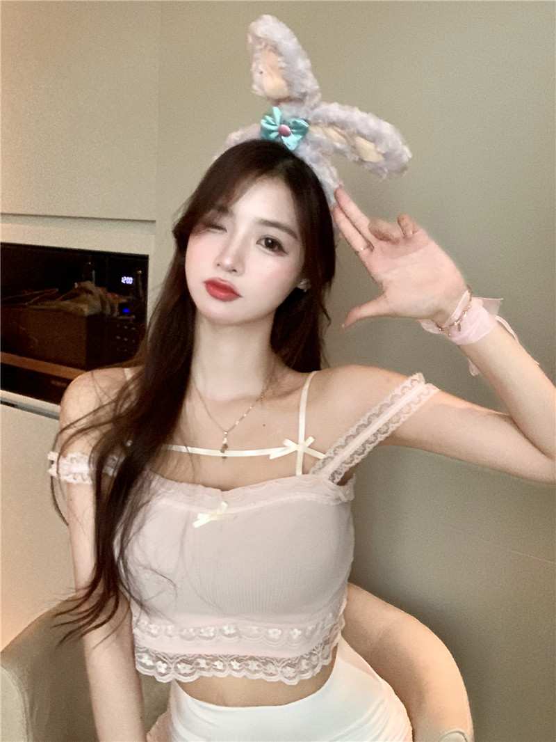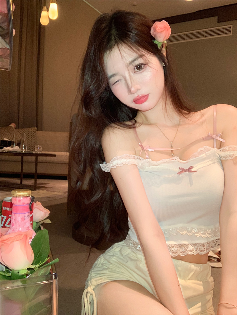 Кружевная летняя брендовая милая короткая майка топ с бантиком, для маленькой груди, высокая талия