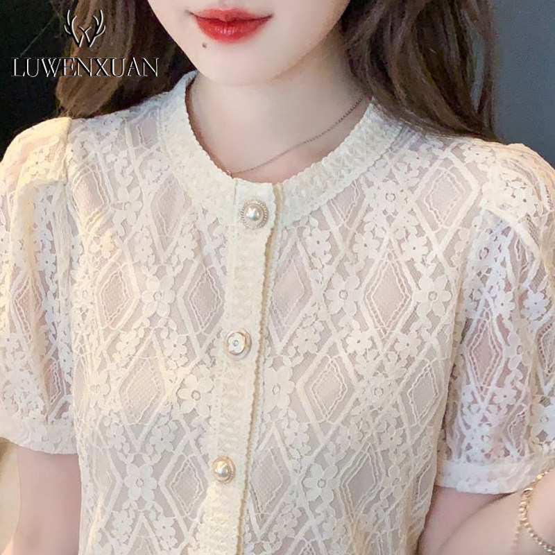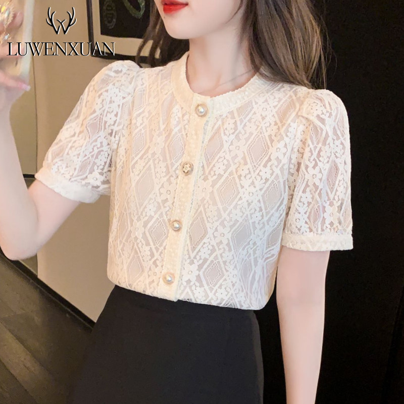 Кружевная футболка, летняя одежда, рубашка, короткий рукав, изысканный стиль