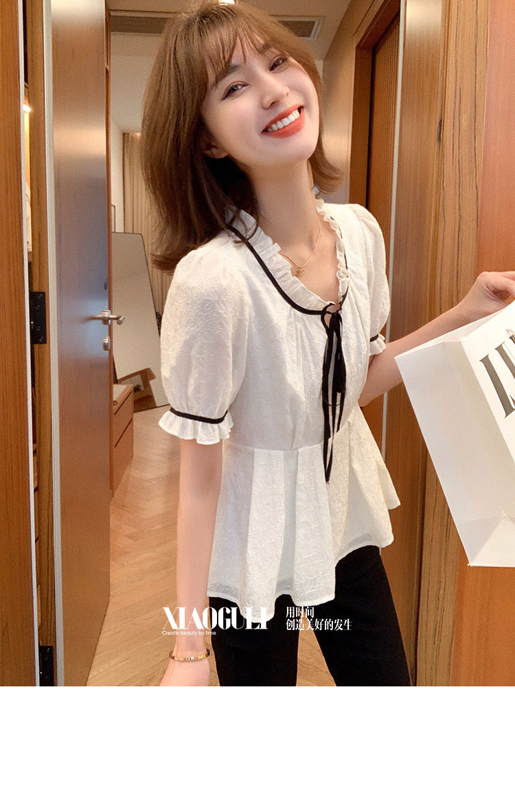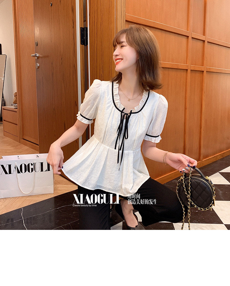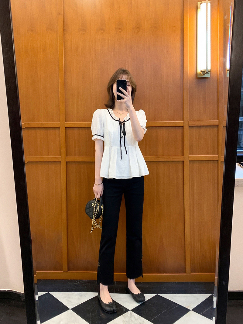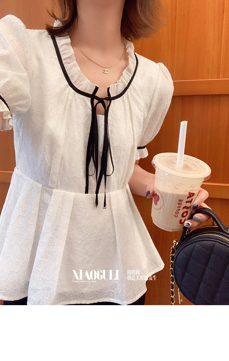 小谷粒 Осенний приталенный корсет, белая футболка, 2023, французский стиль, короткий рукав