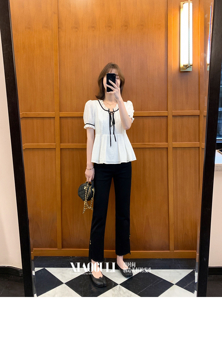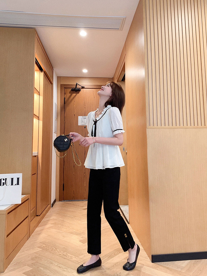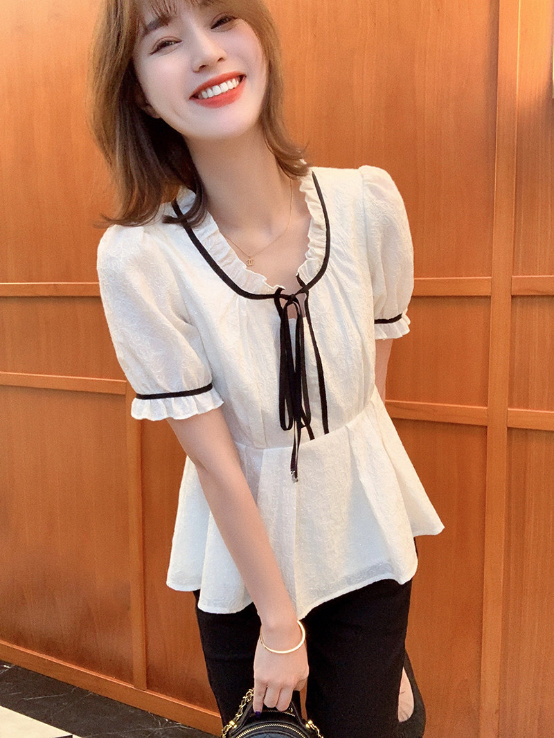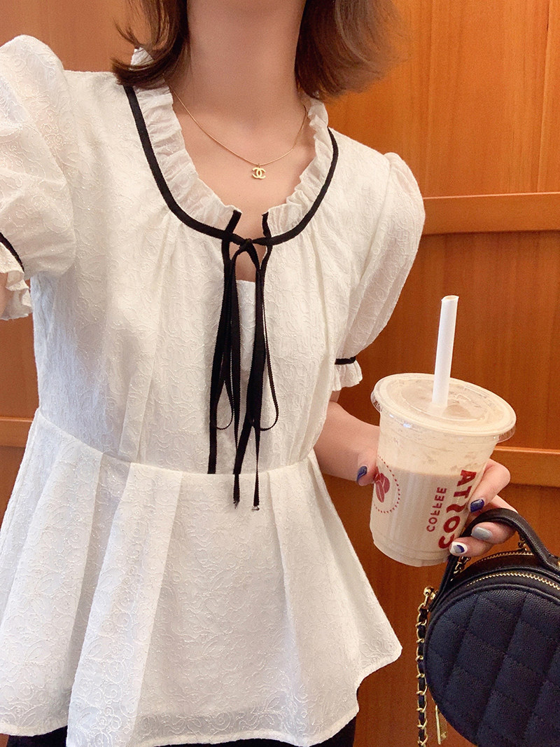 小谷粒 Осенний приталенный корсет, белая футболка, 2023, французский стиль, короткий рукав