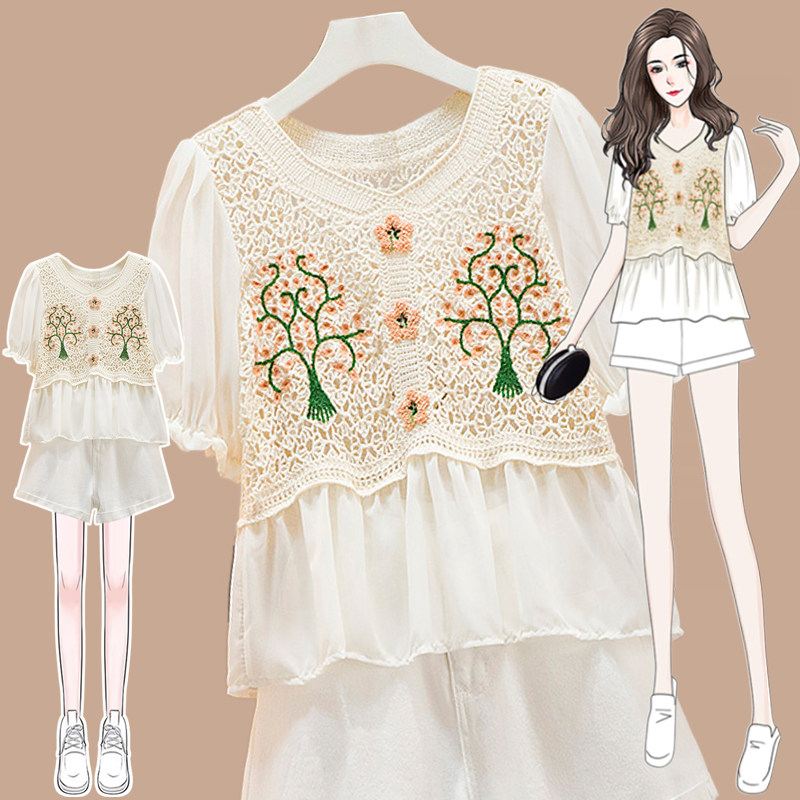 Шифоновый небольшой летний корсет, 2023, цветочный принт, короткий рукав, в западном стиле