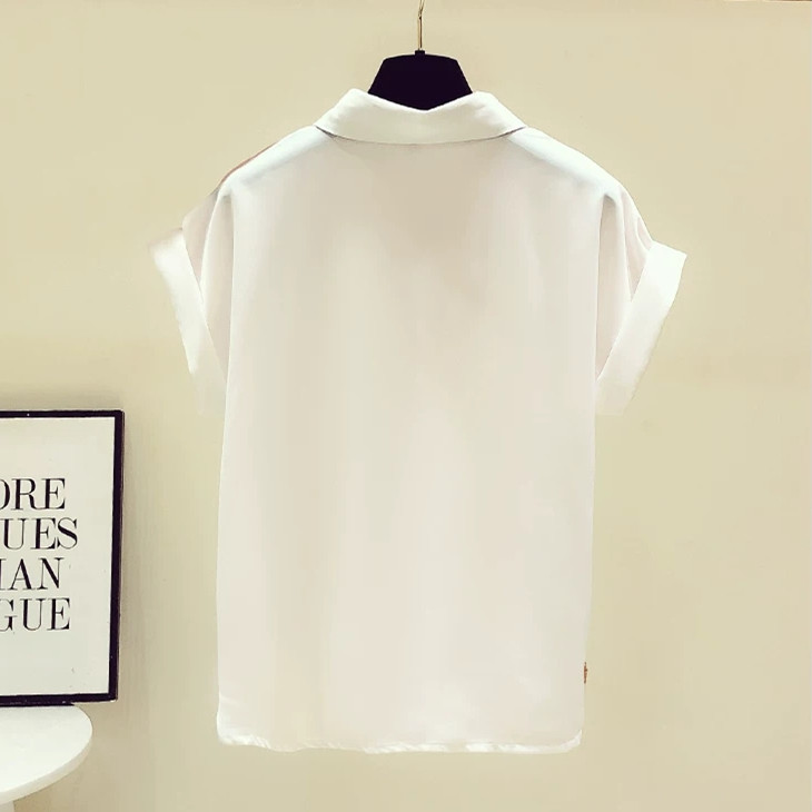 Скидка бренда Аутентичная женская лейбл -лейбл торговый центр для снятия среднего кабинета специальное предложение специальное ценовое воротник контрастная шифоновая рубашка лето