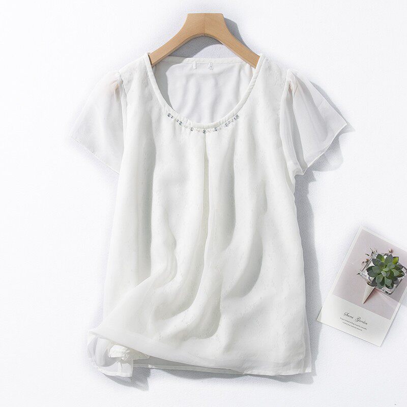 Двухслойная антиперспективная шифоновая рубашка с короткими рукавами
