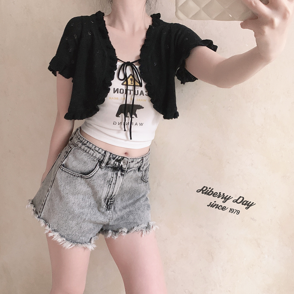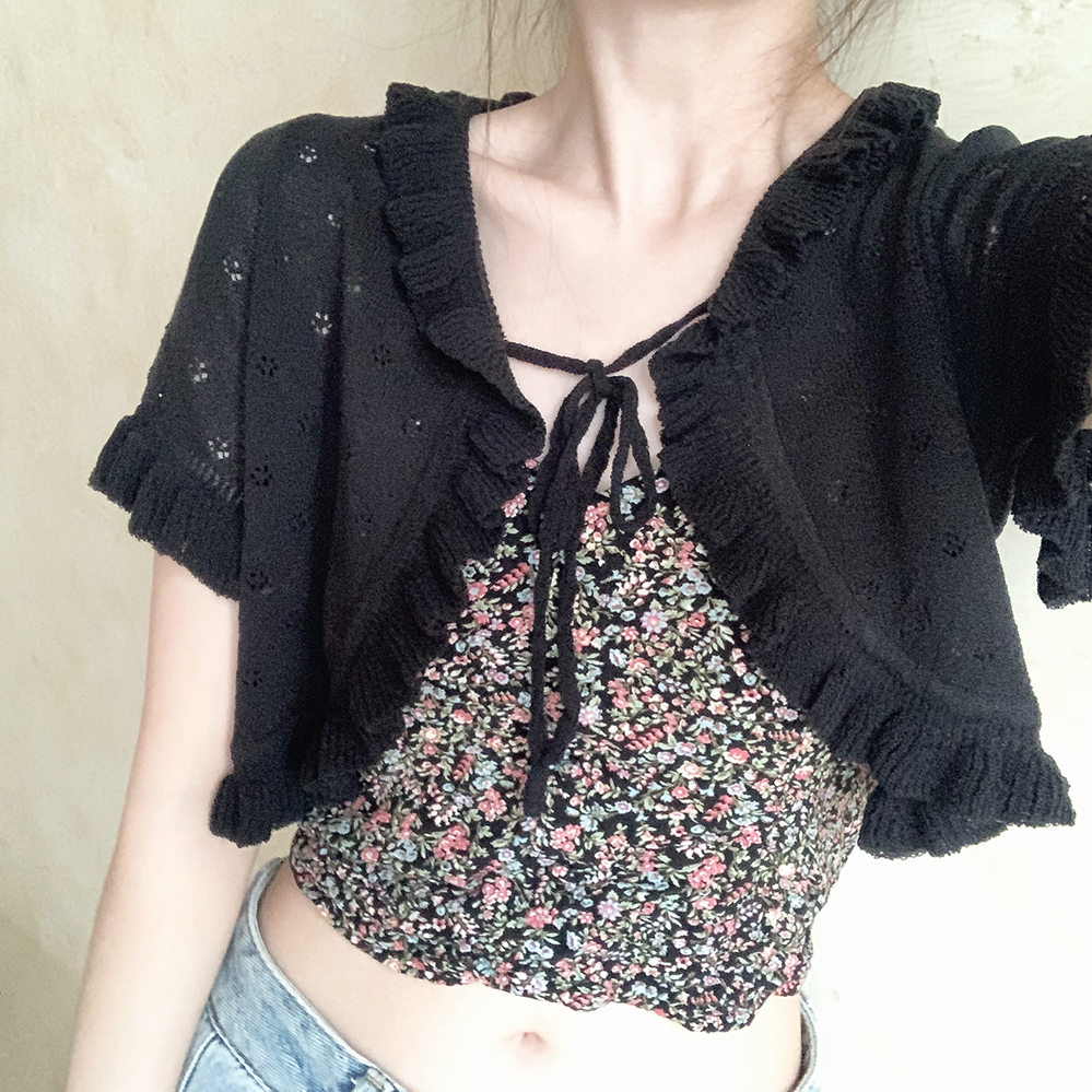 Черный белый цветной трикотажный кардиган, высокая талия