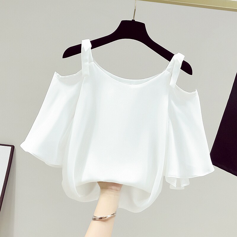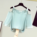 Сексуальная шифоновая летняя майка, открытые плечи, короткий рукав