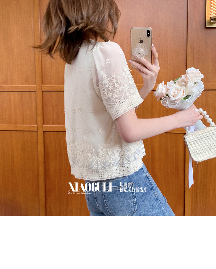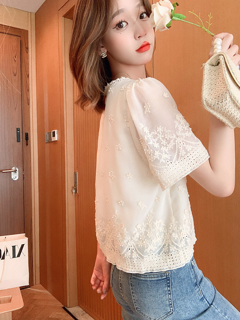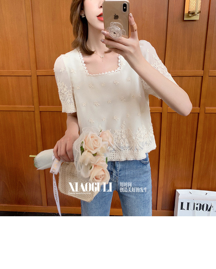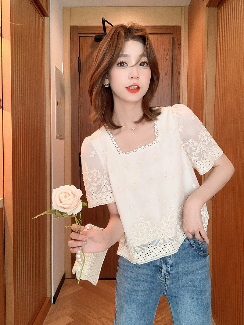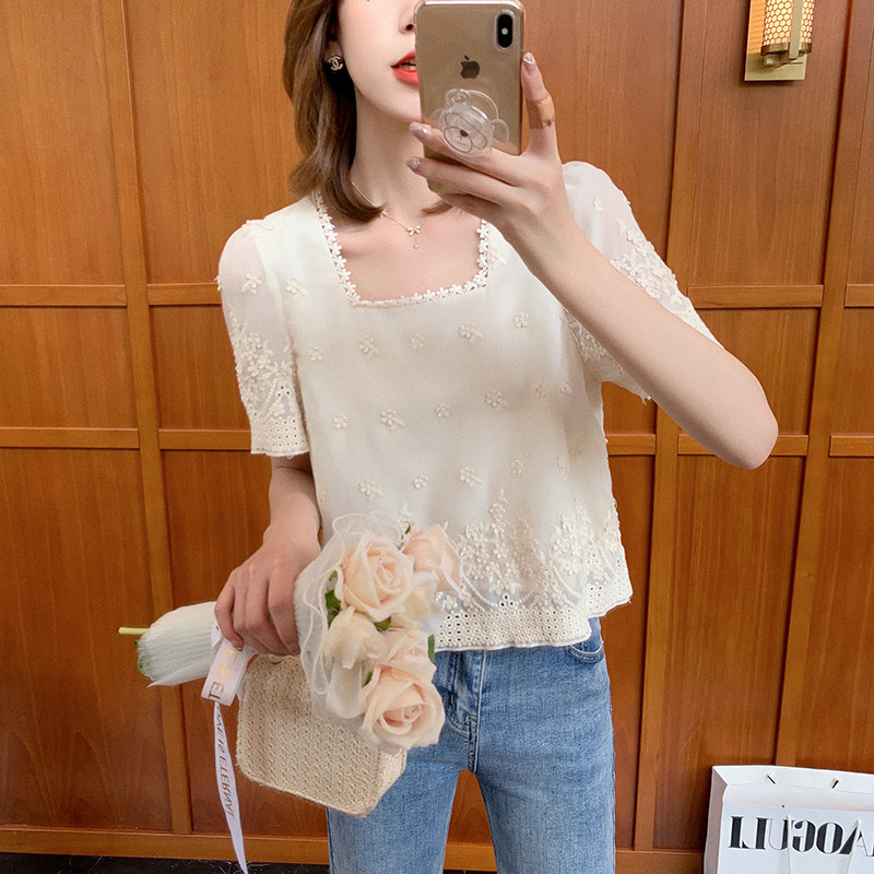Маленькая зерно французская ретро-ретро-рубашка с коротки