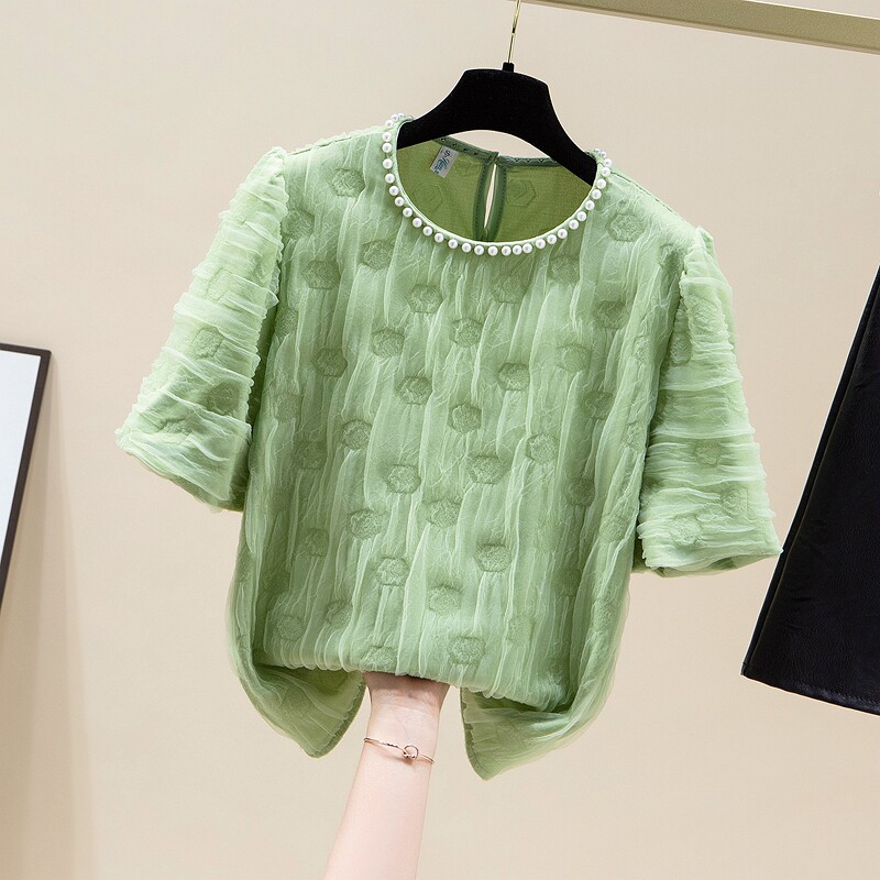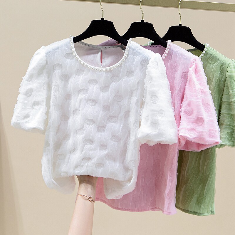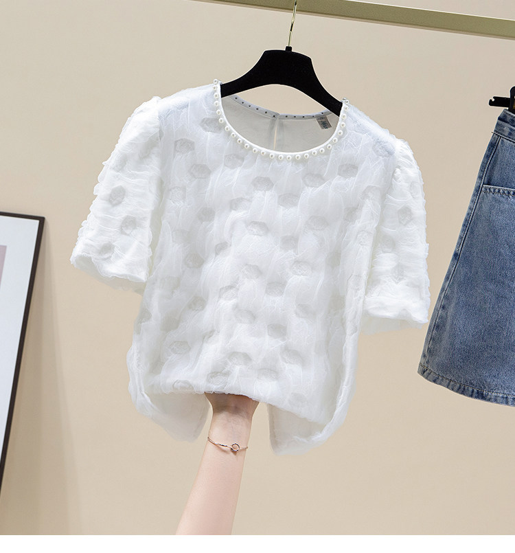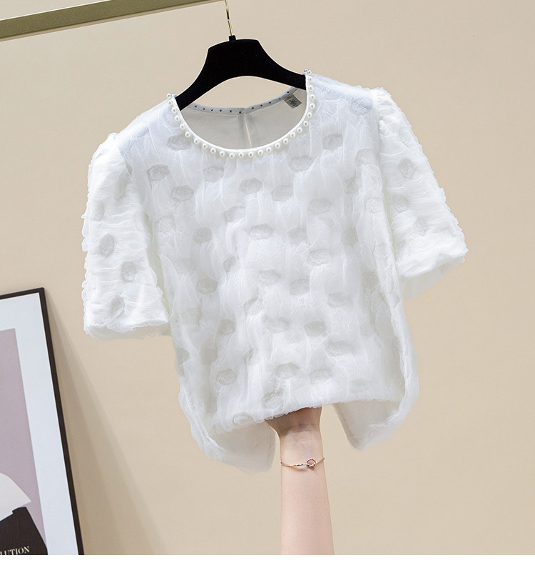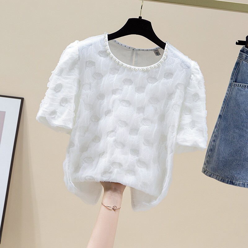 Белая летняя кружевная шелковая футболка с коротким рукавом, изысканный стиль