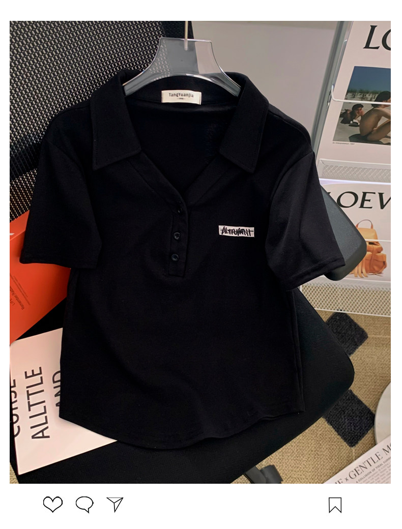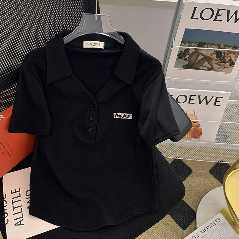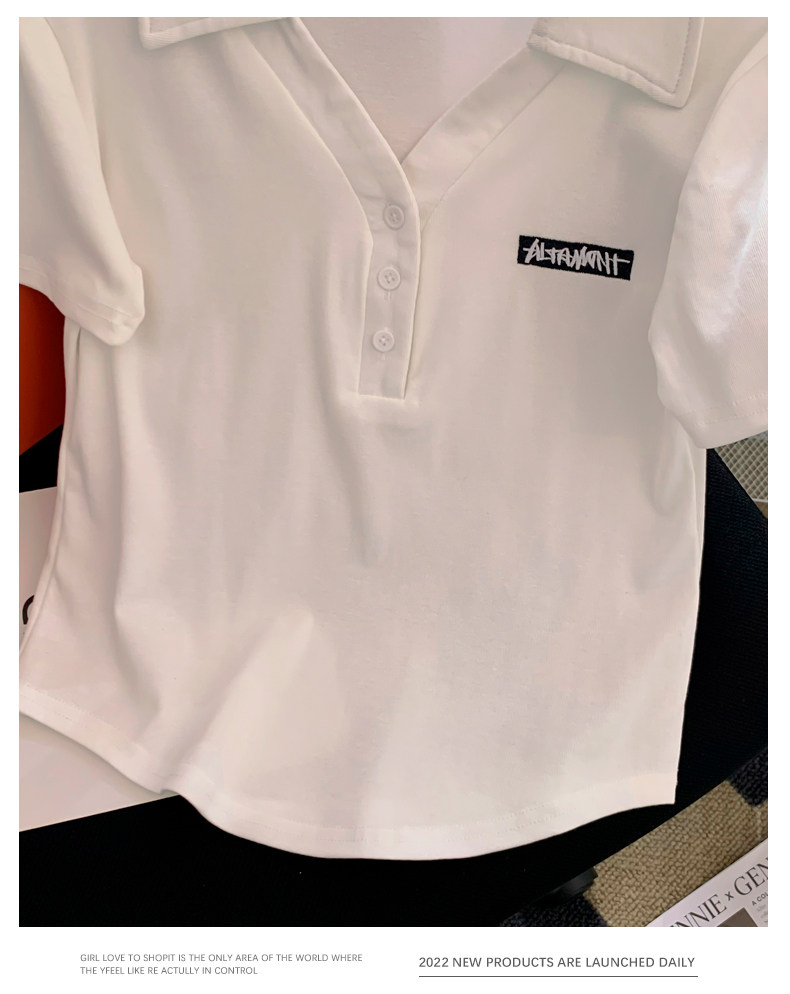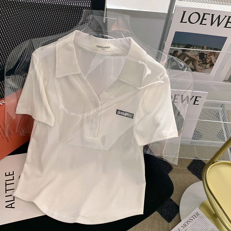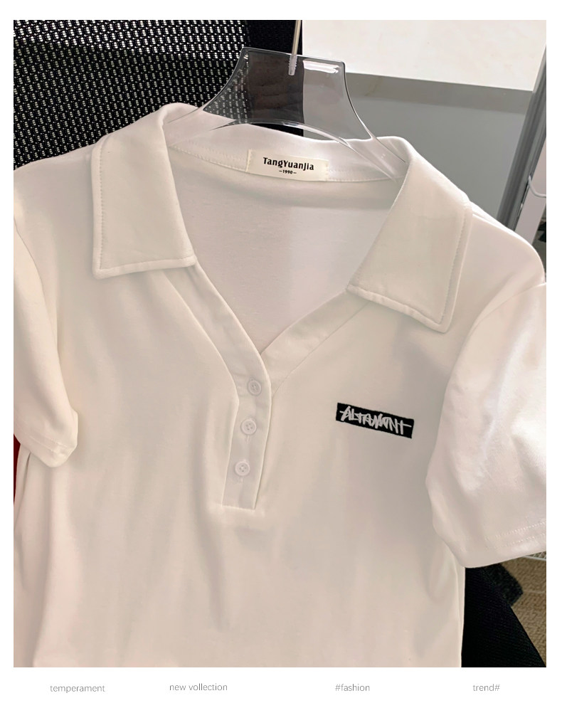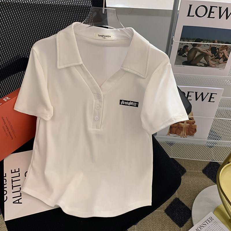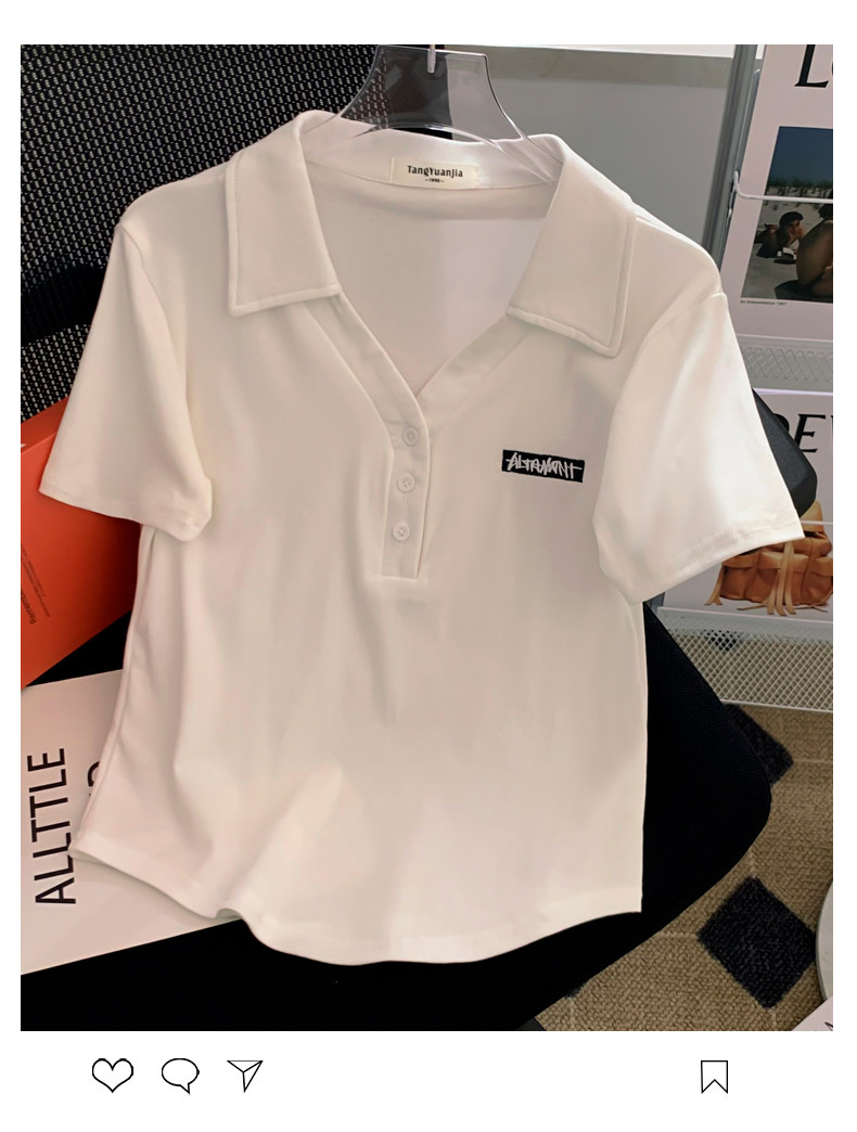 Летняя белая летняя одежда, футболка polo, короткая футболка с коротким рукавом, с вышивкой, по фигуре, подходит для подростков