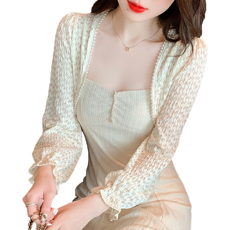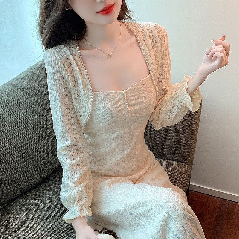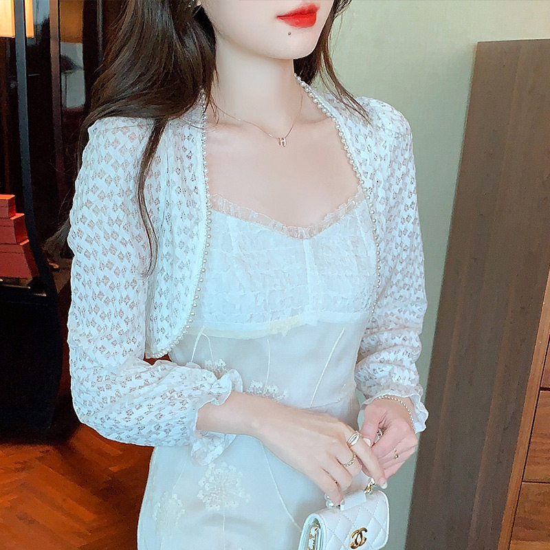 Летняя тонкая накидка, куртка, кружевное платье-комбинация, жилет, защита от солнца