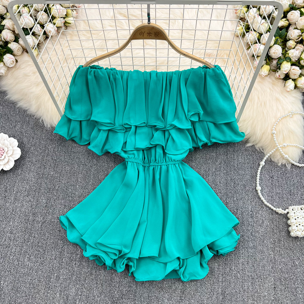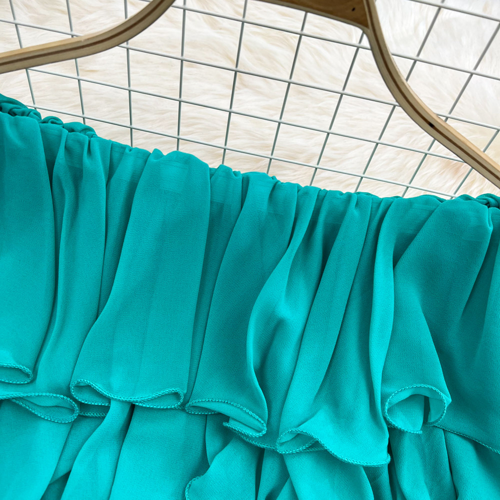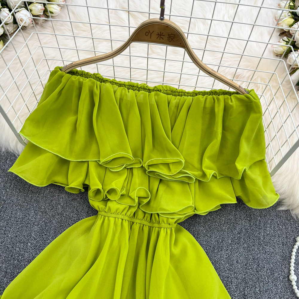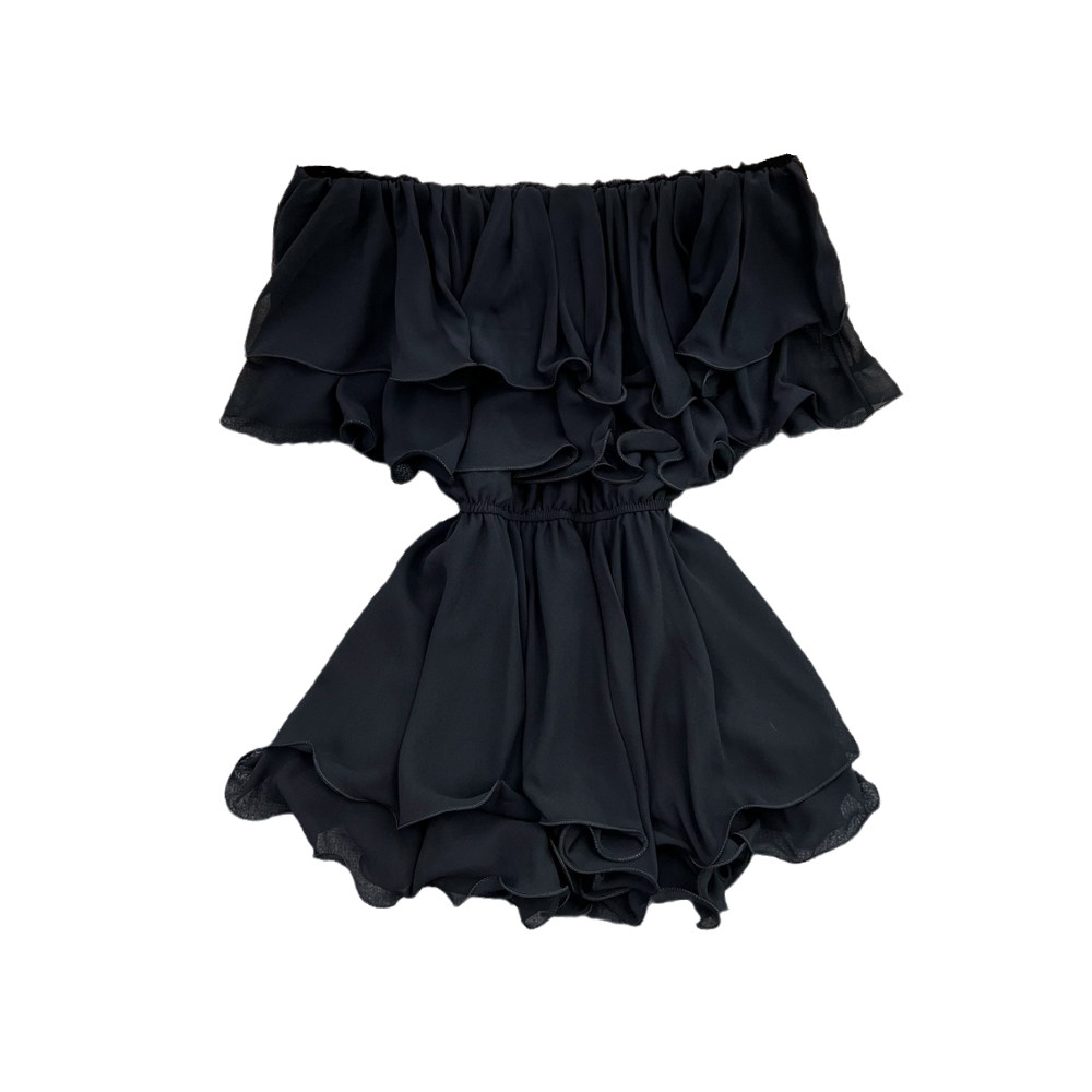Шифоновая рубашка с открытой плечом для женщин в 2025 году. Летняя новая корейская версия Сладкая и пряная супер-сказочная рубежная талия
