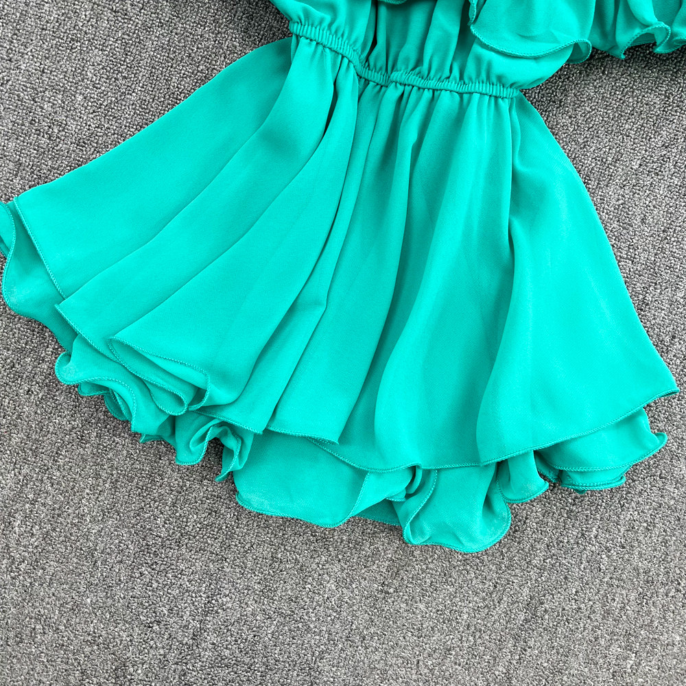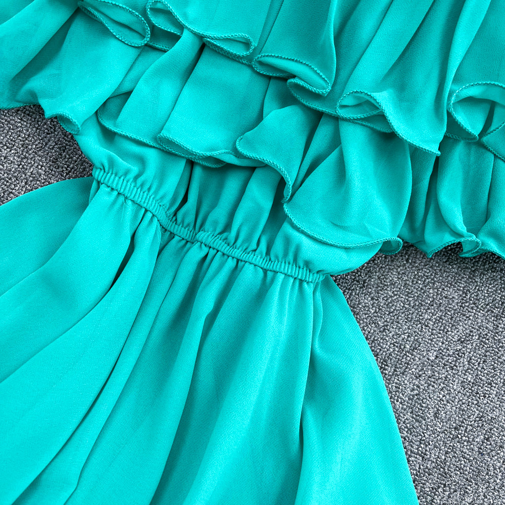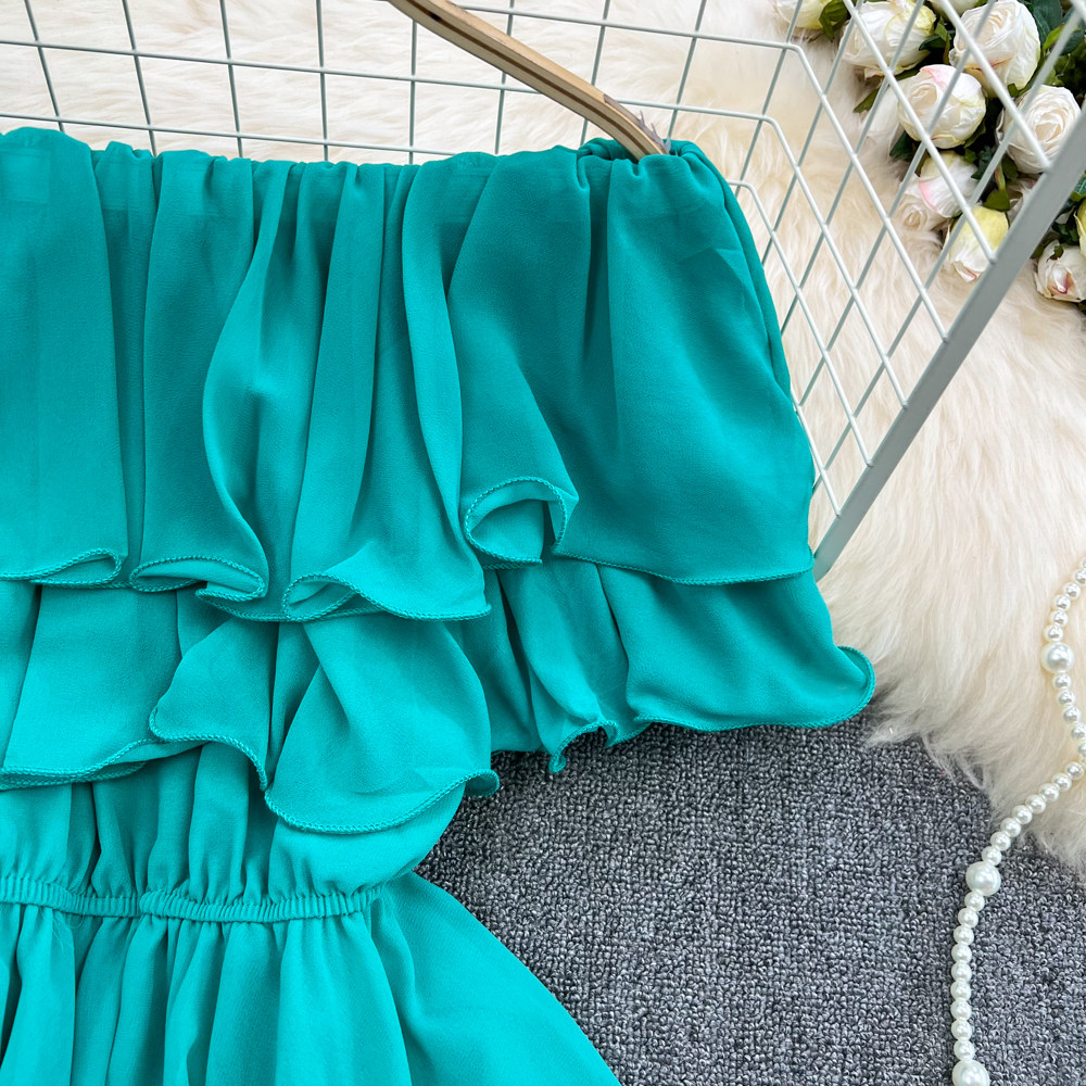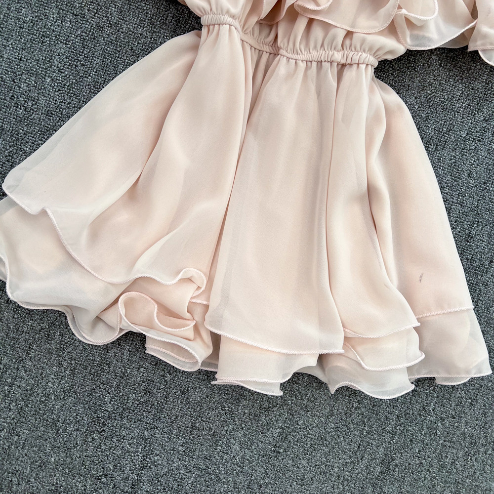 Шифоновая рубашка с открытой плечом для женщин в 2025 году. Летняя новая корейская версия Сладкая и пряная супер-сказочная рубежная талия