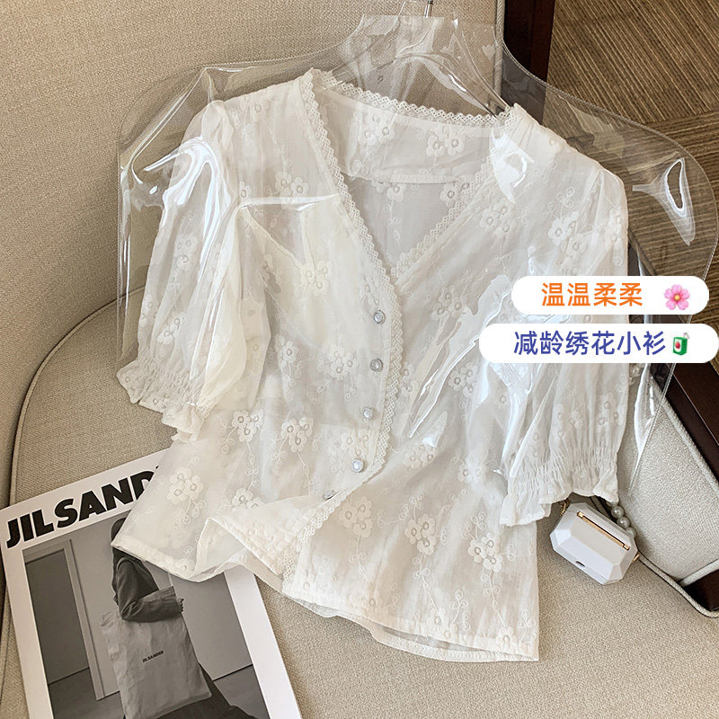 Брендовая кружевная рубашка, V-образный вырез, кружевное платье, в стиле Шанель