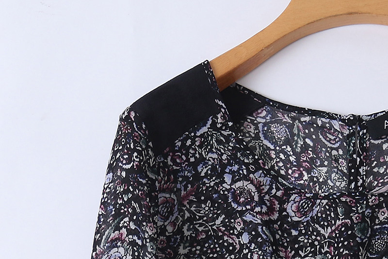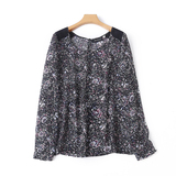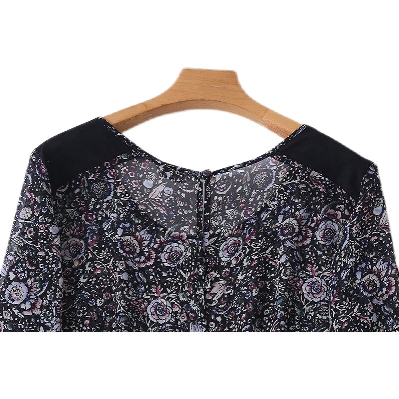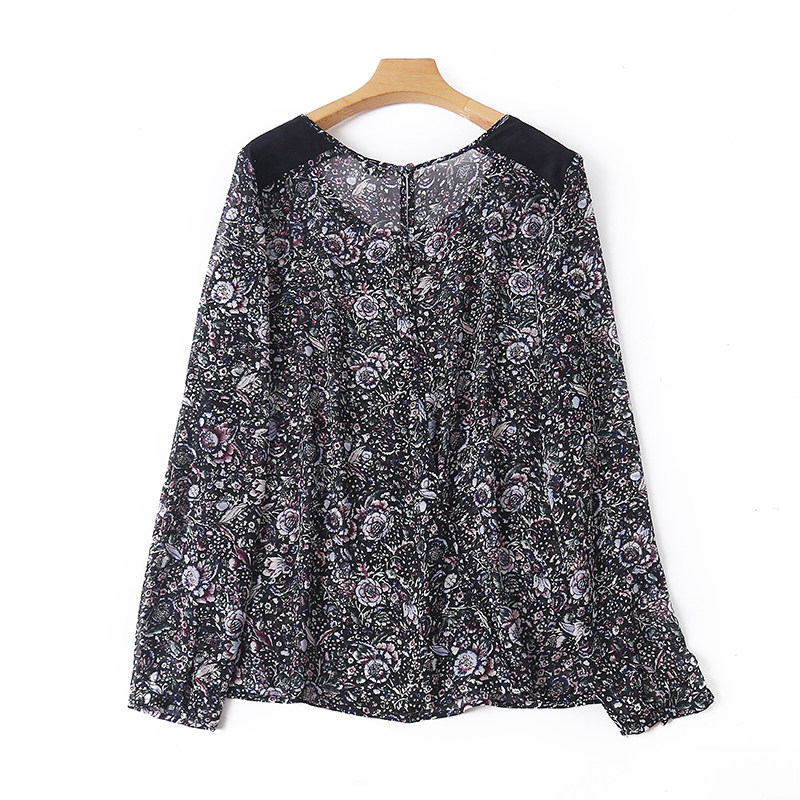 Шифоновый осенний базовый лонгслив, футболка, цветочный принт, с открытой спиной