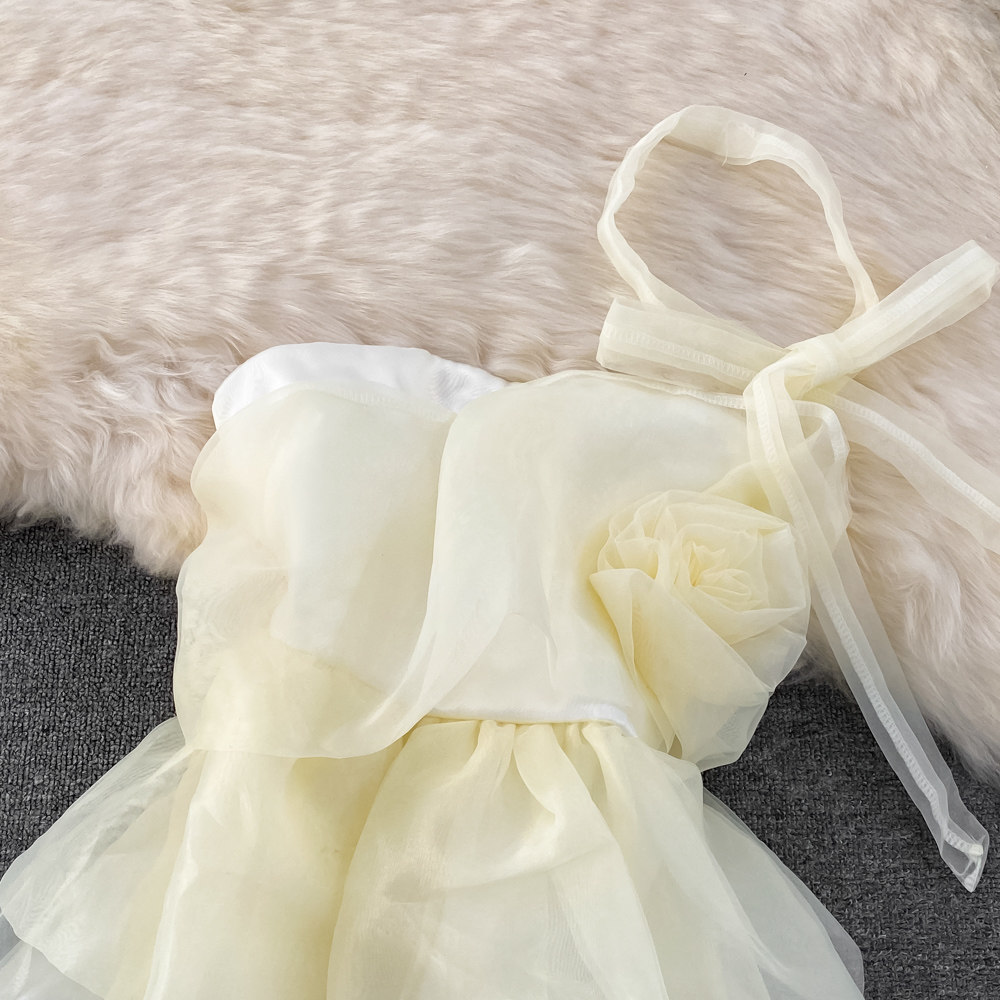 Трехмерный топ без лямок, юбка, приталенный корсет без рукавов, короткое платье, открытые плечи, по фигуре, подходит для подростков, А-силуэт