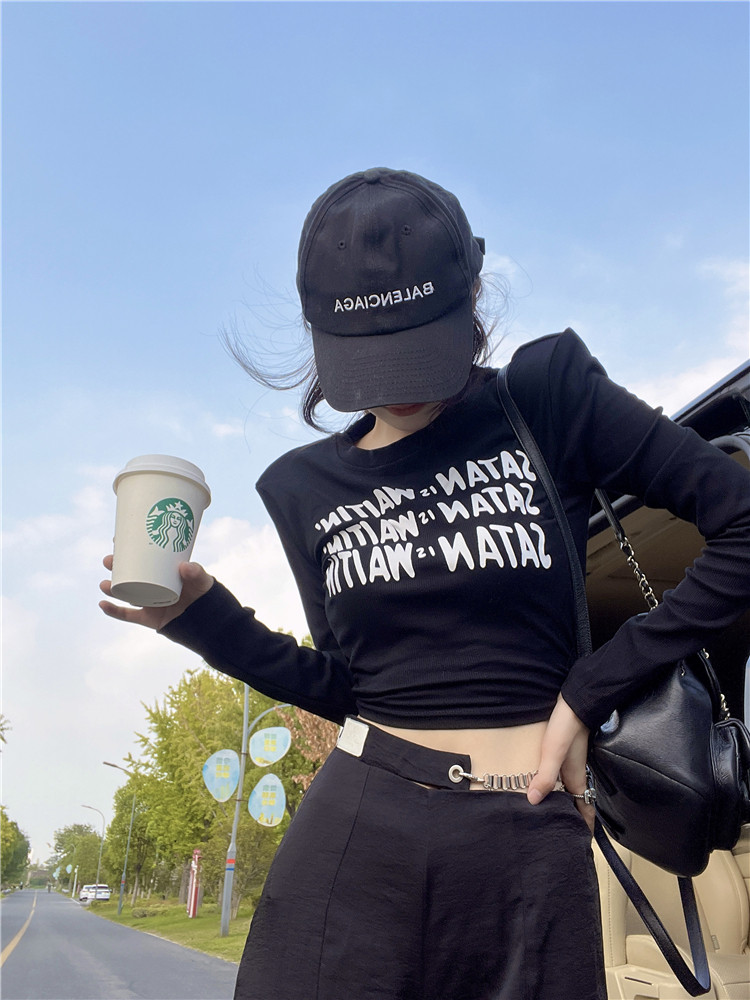 Сексуальные короткие базовые приятные телу наплечники, демисезонный лонгслив, в американском стиле