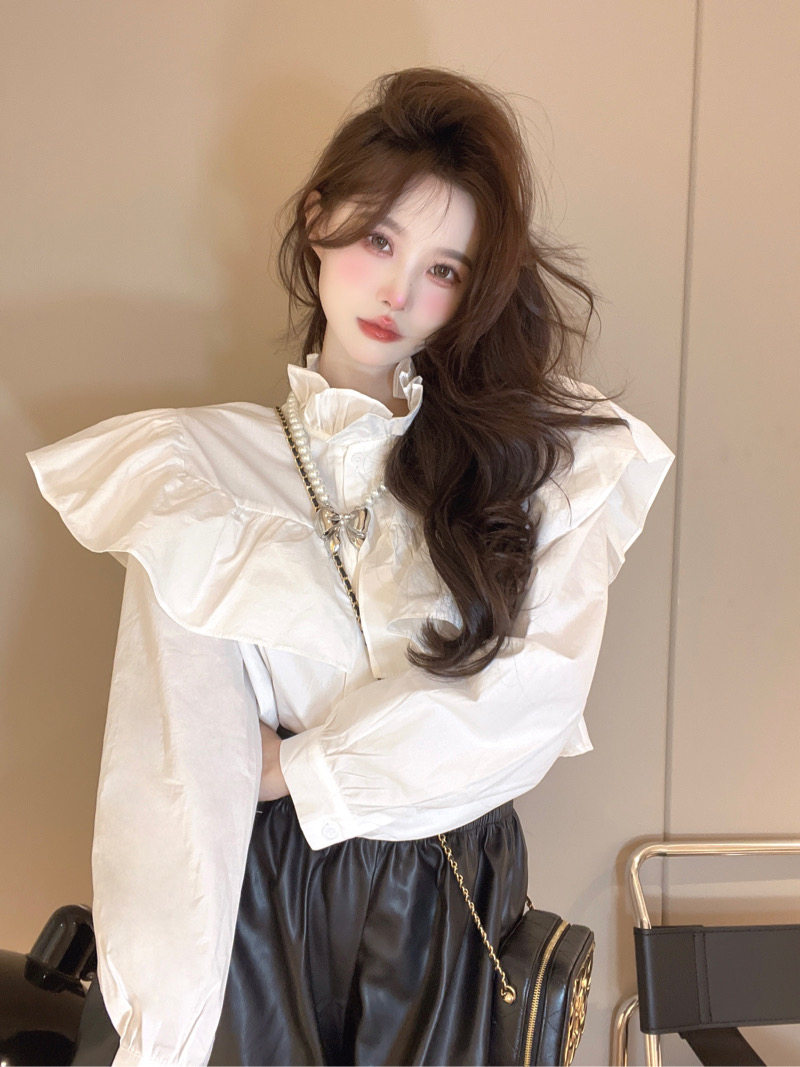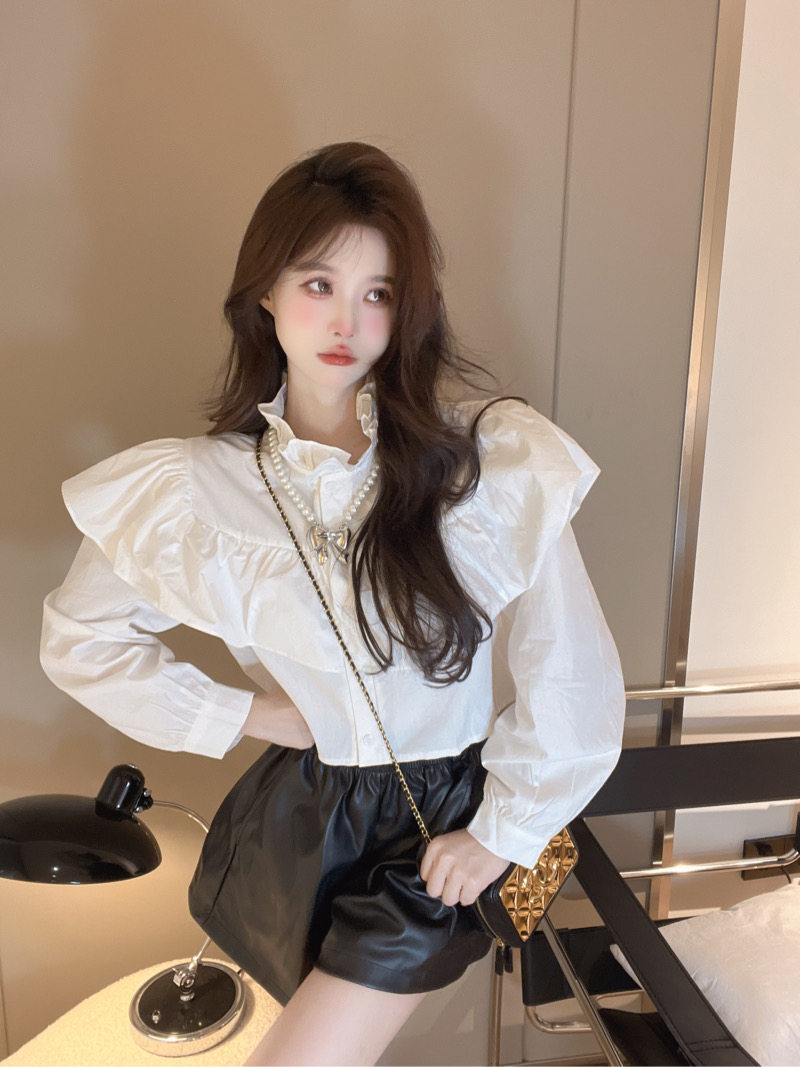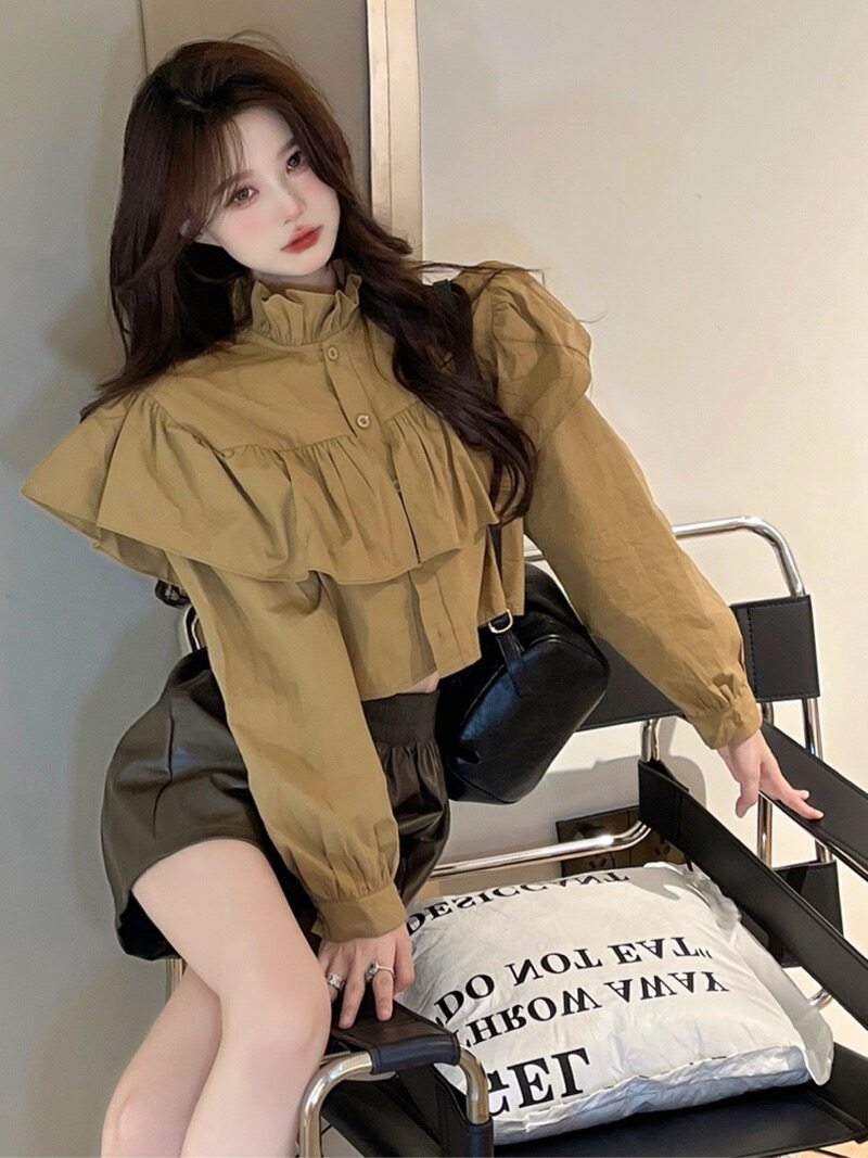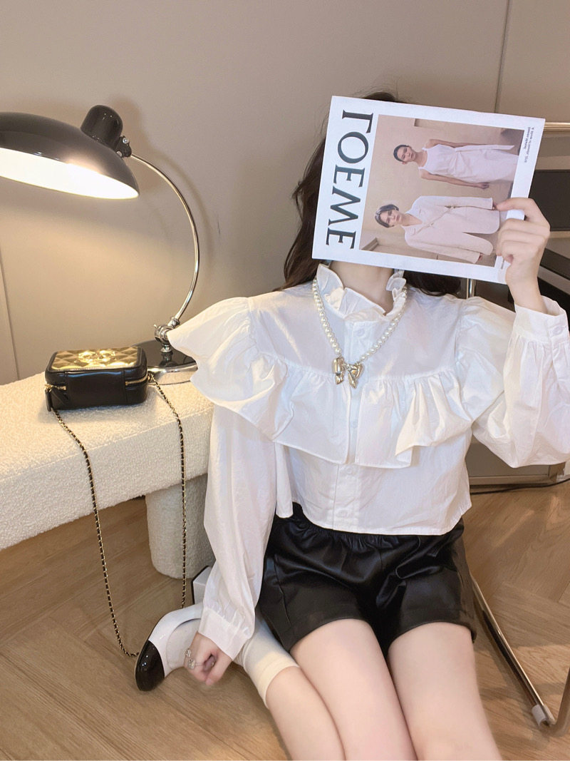 Демисезонная рубашка, короткий лонгслив, французский стиль, изысканный стиль