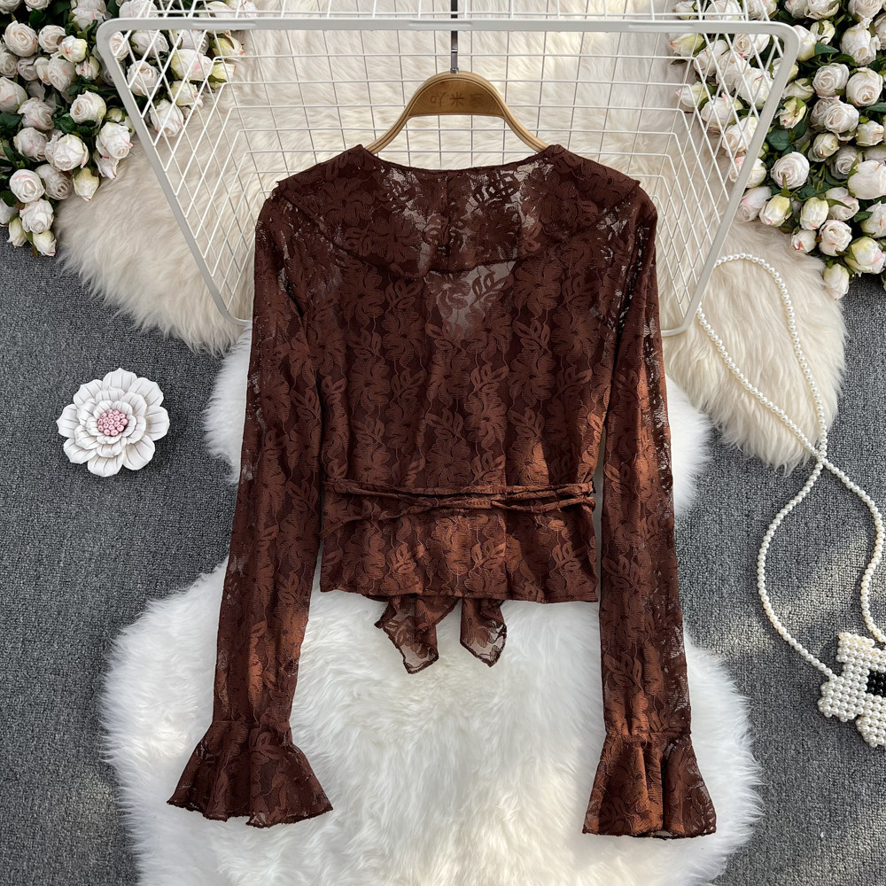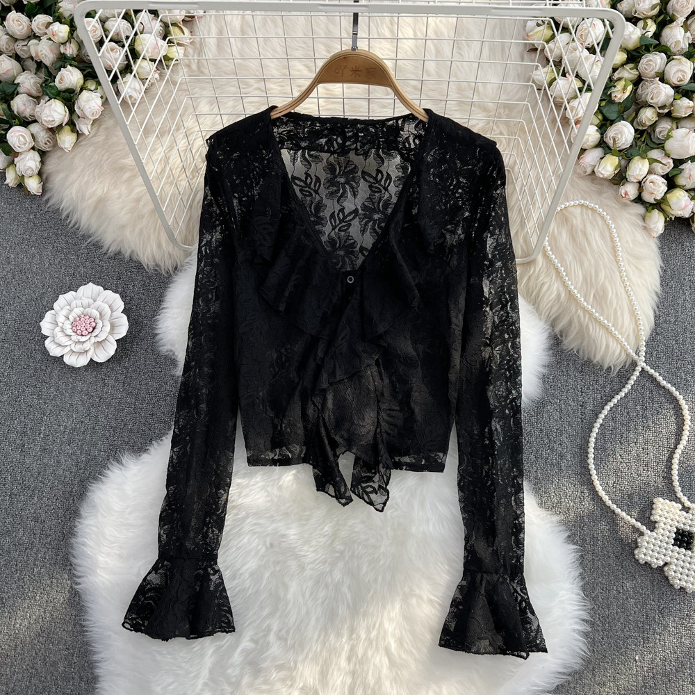 Осенний мегафон, приталенный короткий лонгслив, в корейском стиле, V-образный вырез