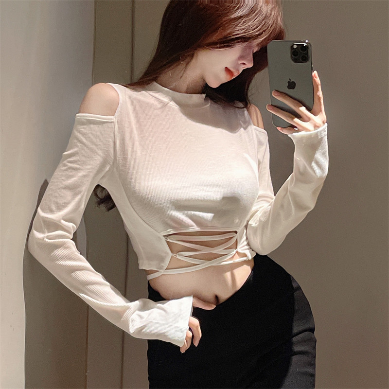 Сексуальный короткий демисезонный ремень, лонгслив, приятная телу футболка, высокий воротник