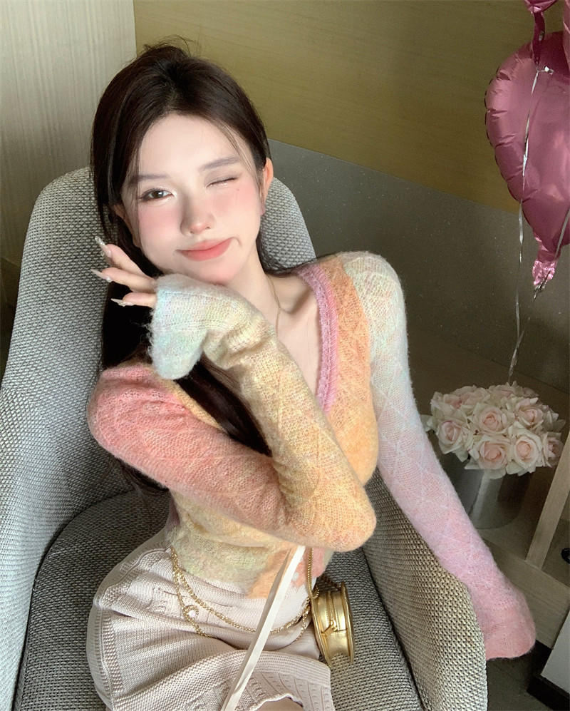 Радужный демисезонный сексуальный трикотажный свитер, градиент, изысканный стиль