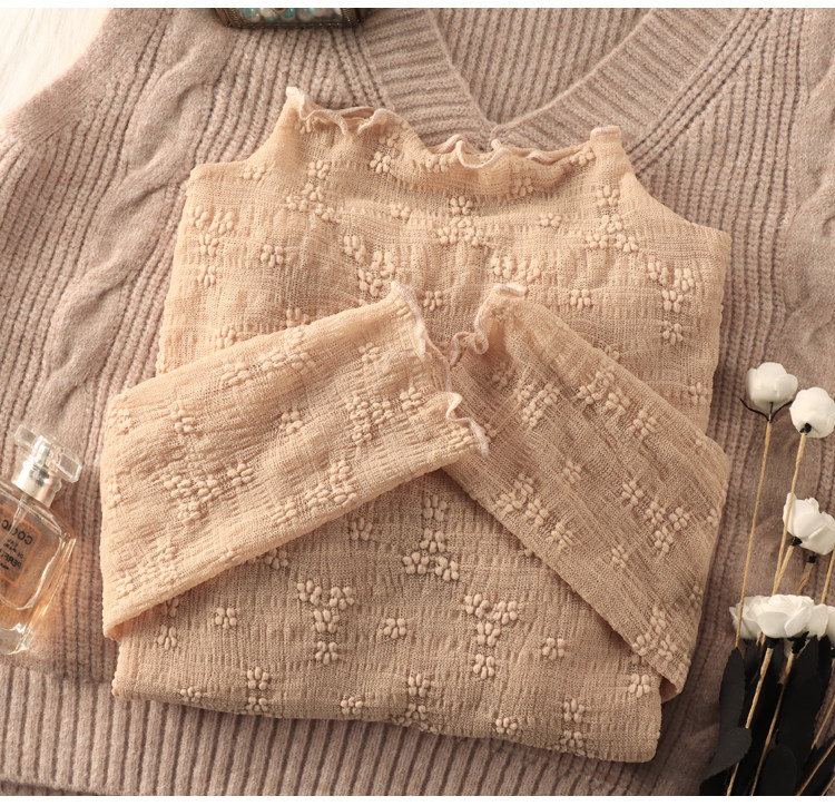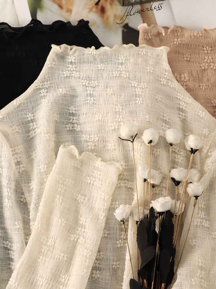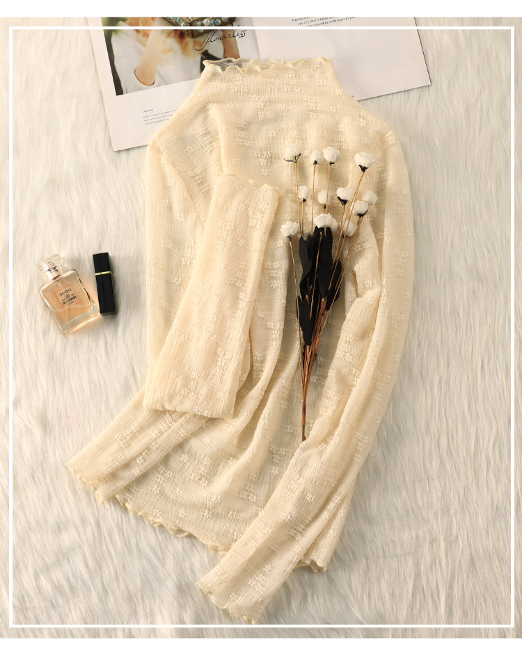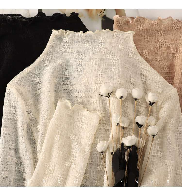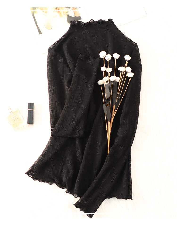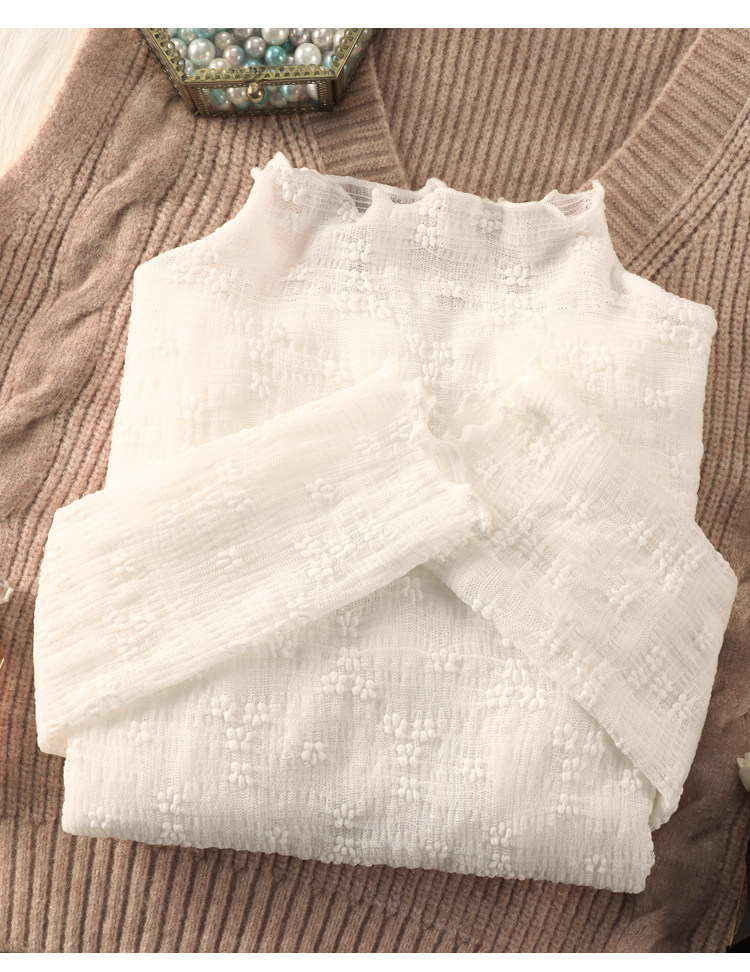 Кружевная шифоновая рубашка, высокий воротник