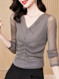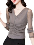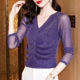 Кружевая базовая рубашка для женской одежды на весну, осень и зима 2024 г. Новый европейский стиль горячий и модный универсальный нижний белье