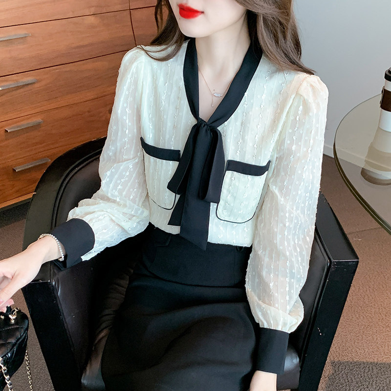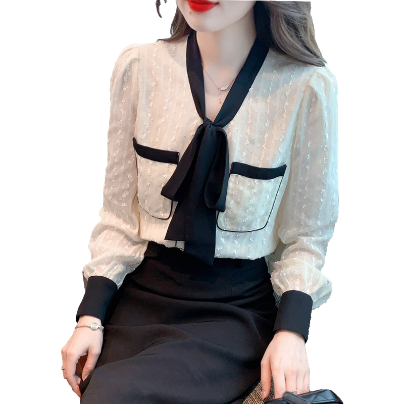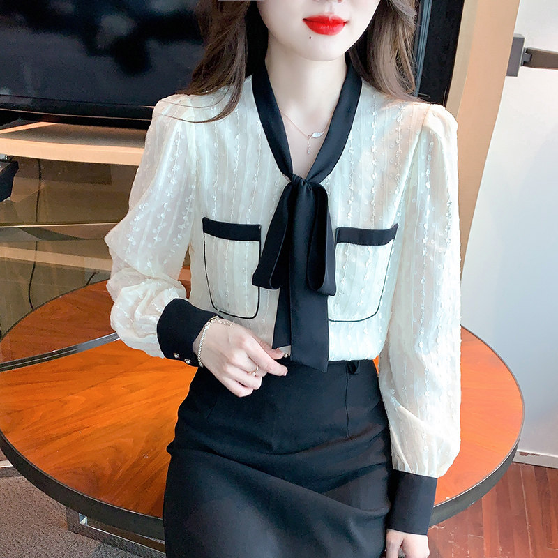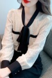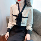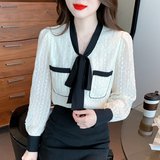 Осенняя модная кружевная шелковая приятная телу рубашка, в стиле Шанель, коллекция 2023, в западном стиле
