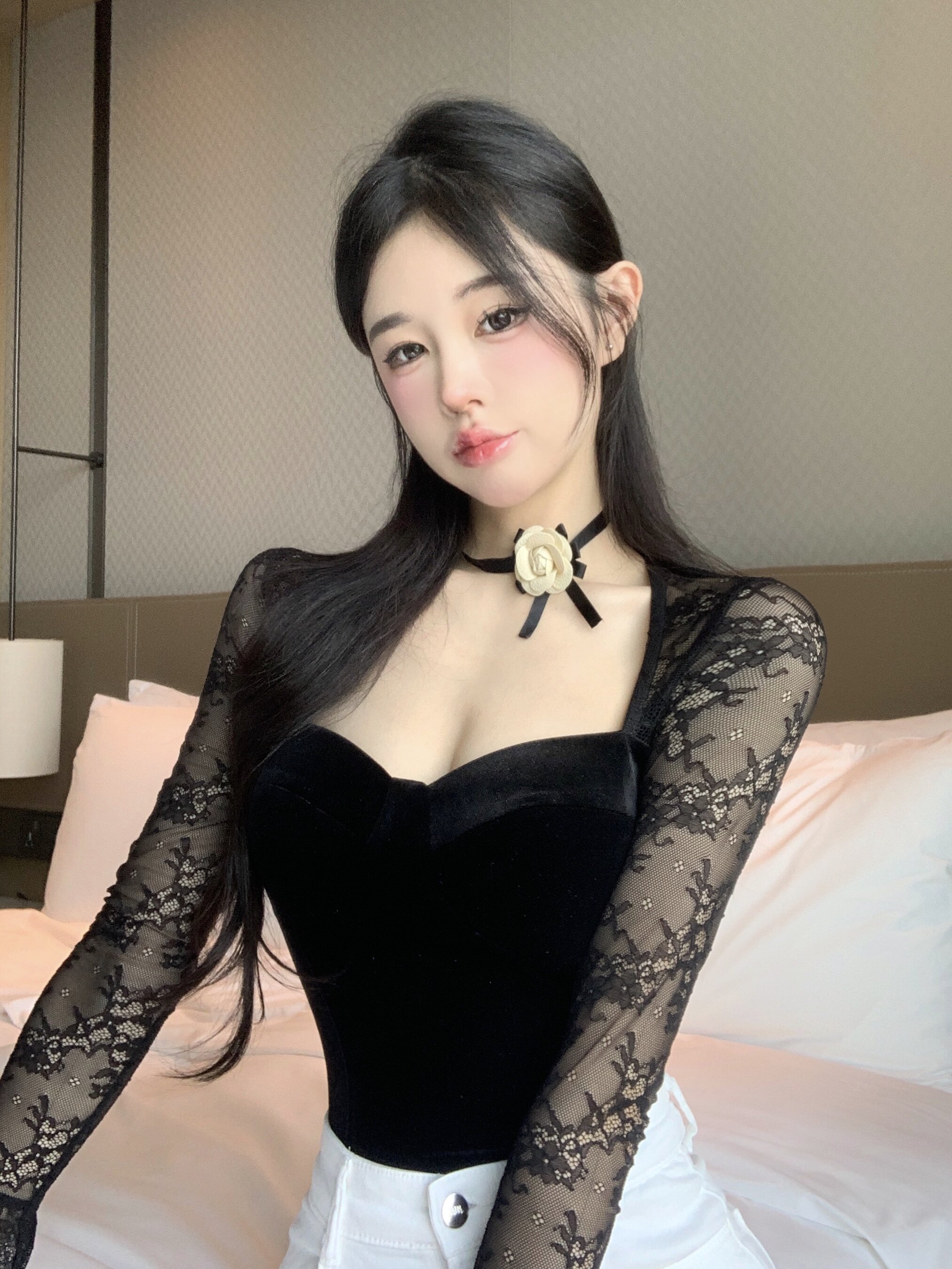 Бархатная сплайсная кружевная рубашка для женщин осенью и зима чистая горячая девушка сексуальная квадратная шея короткая темпераментная сетка внутренний топ