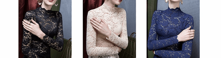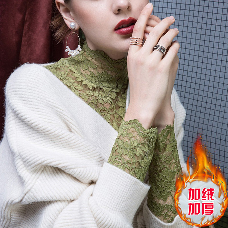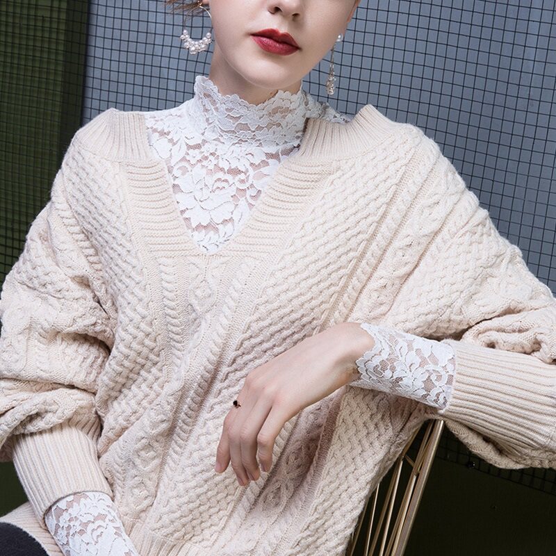 Кружевной шелковый приятный телу сексуальный утепленный свитер, высокий воротник, в западном стиле