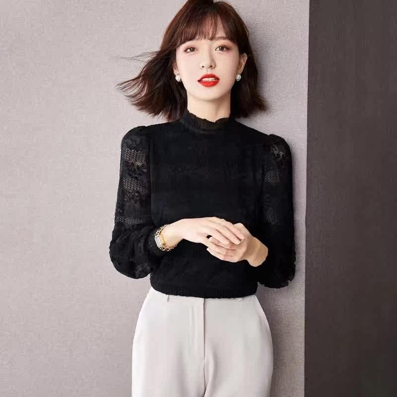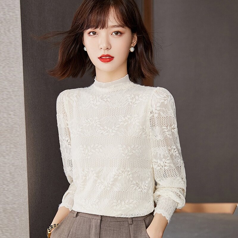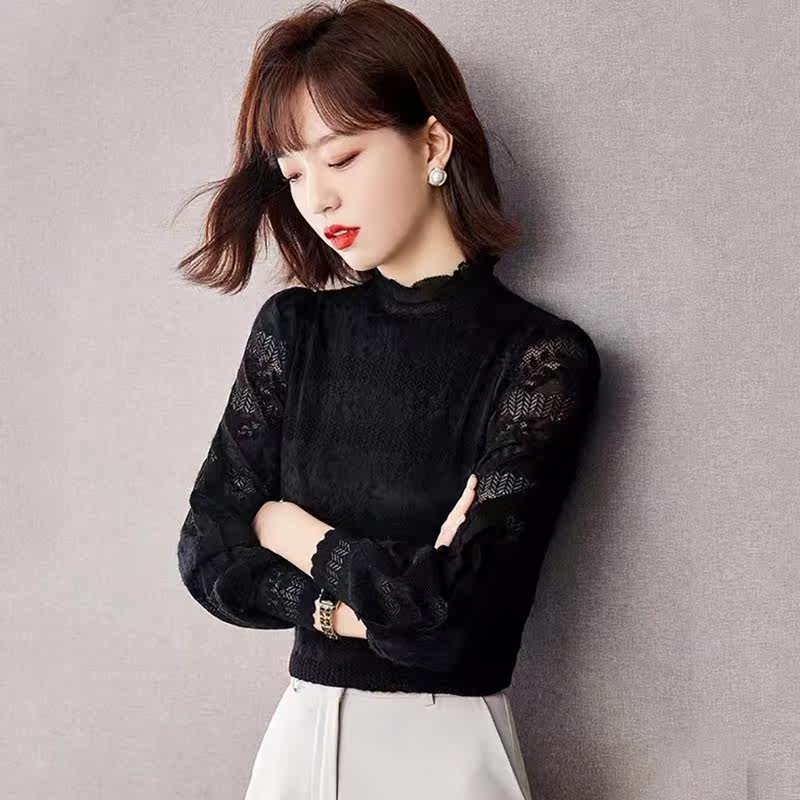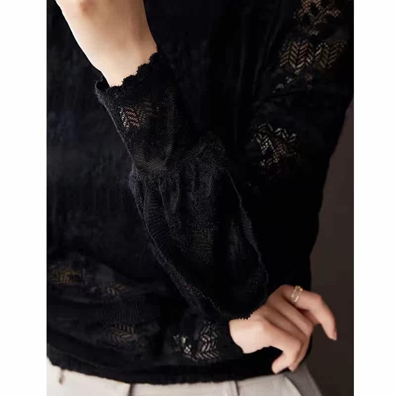 Кружевной шелковый приятный телу свитер, демисезонное термобелье, утепленный нагрудник, высокий воротник, в западном стиле