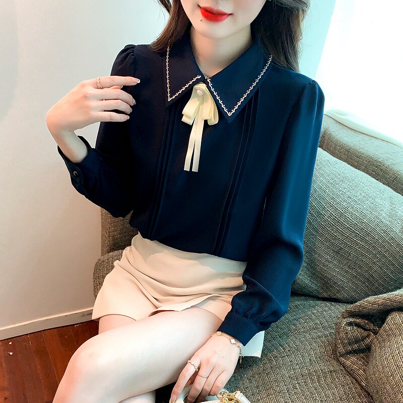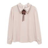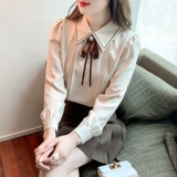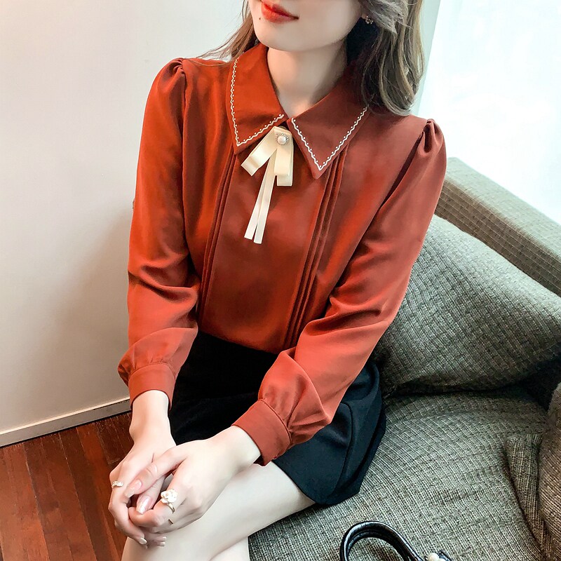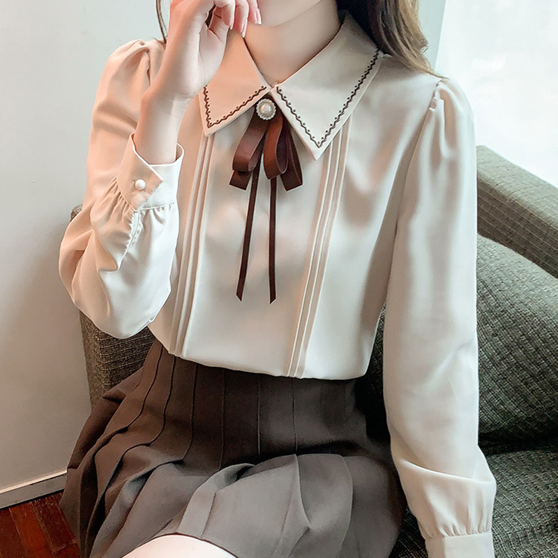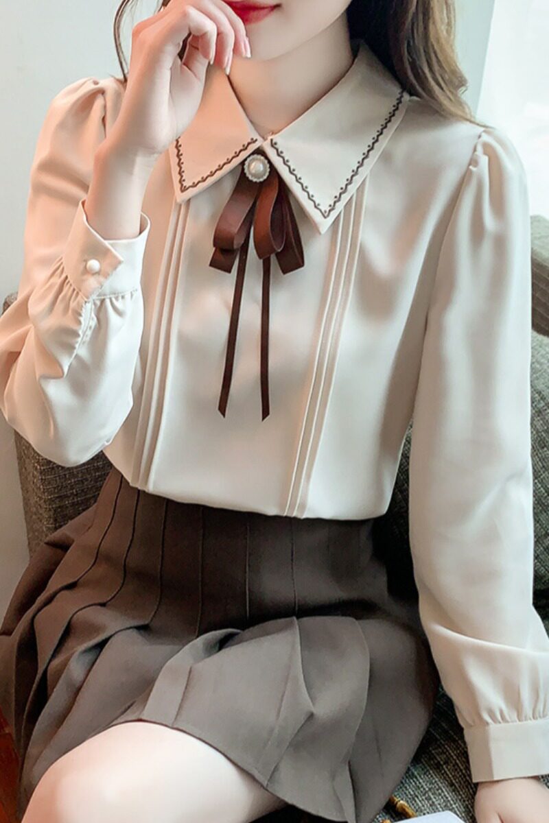 Кукла, осенняя дизайнерская рубашка, базовый приятный телу лонгслив, кукольный воротник, французский стиль, коллекция 2023, в западном стиле, тренд сезона