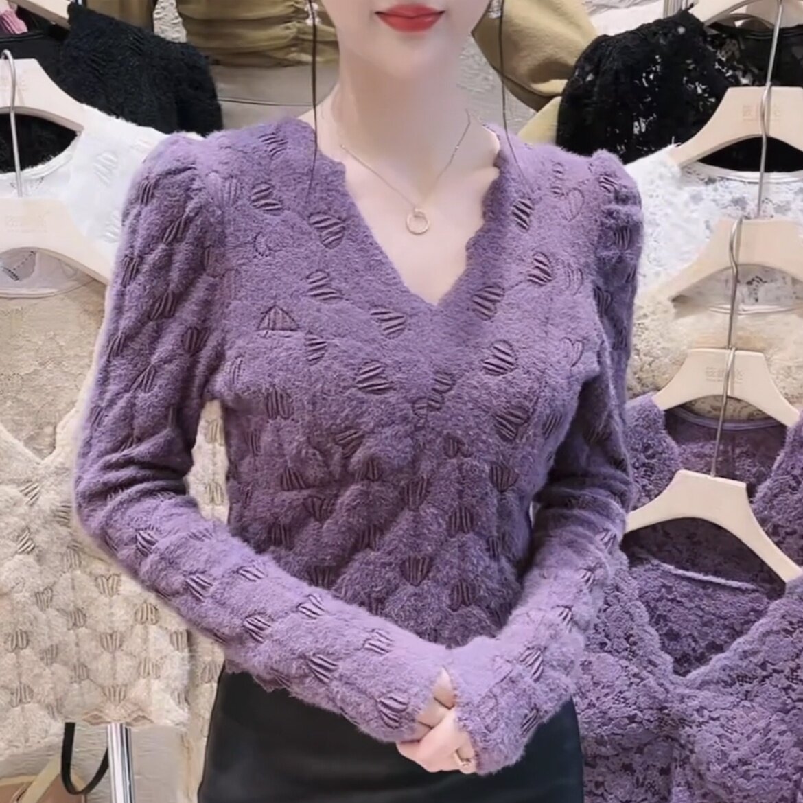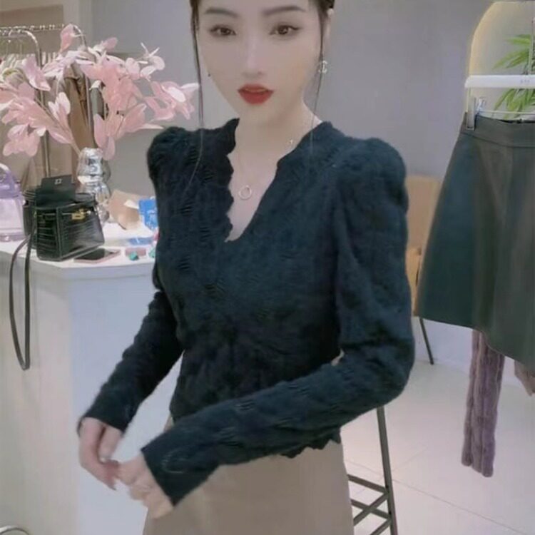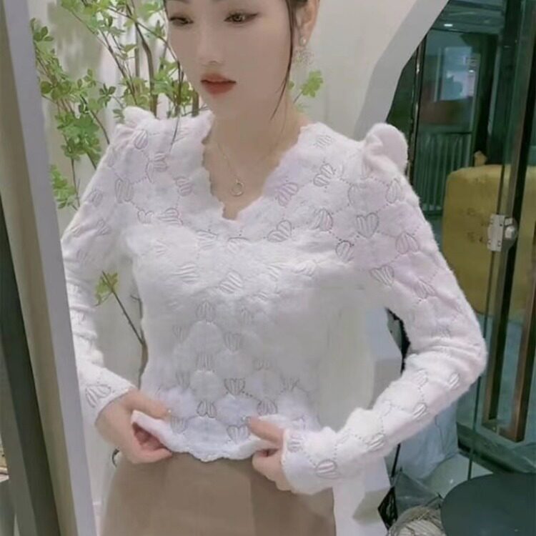 Кружевная рубашка Velvet V-образного выреза для женщин осенью и зимой, весна и осень, тонкая внутренняя рубашка, сексуальная ретро-топ, сексуальный ретро-топ