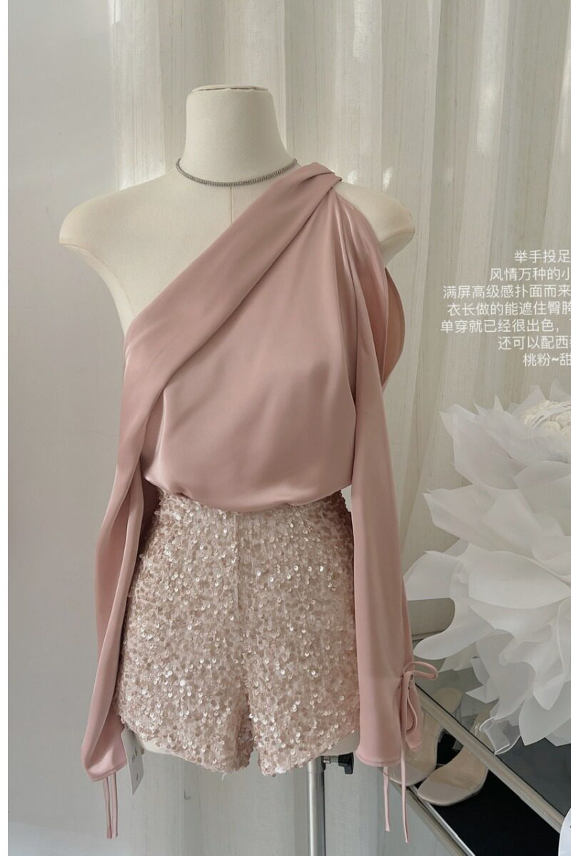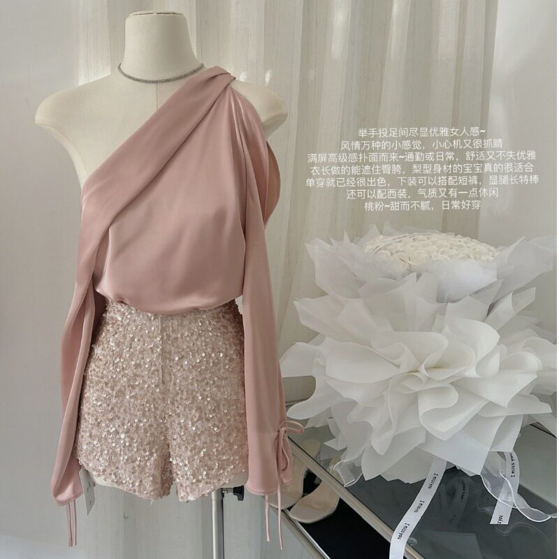 Розовая небольшая дизайнерская элитная рубашка, французский стиль, изысканный стиль