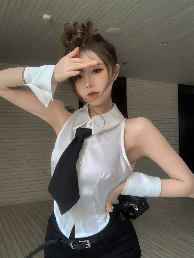 Галстук без рукавов, летняя рубашка, сексуальный бюстгальтер-топ, в стиле Шанель