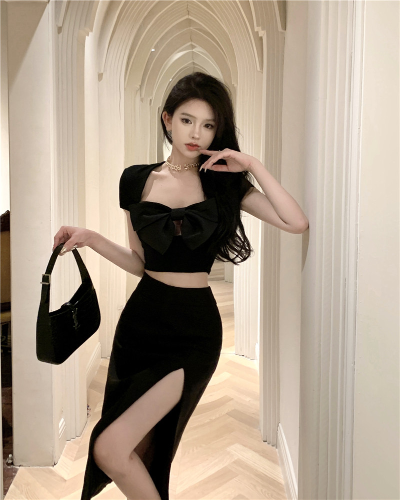 Сексуальная короткая дизайнерская футболка с коротким рукавом с бантиком, тренд сезона, квадратный вырез