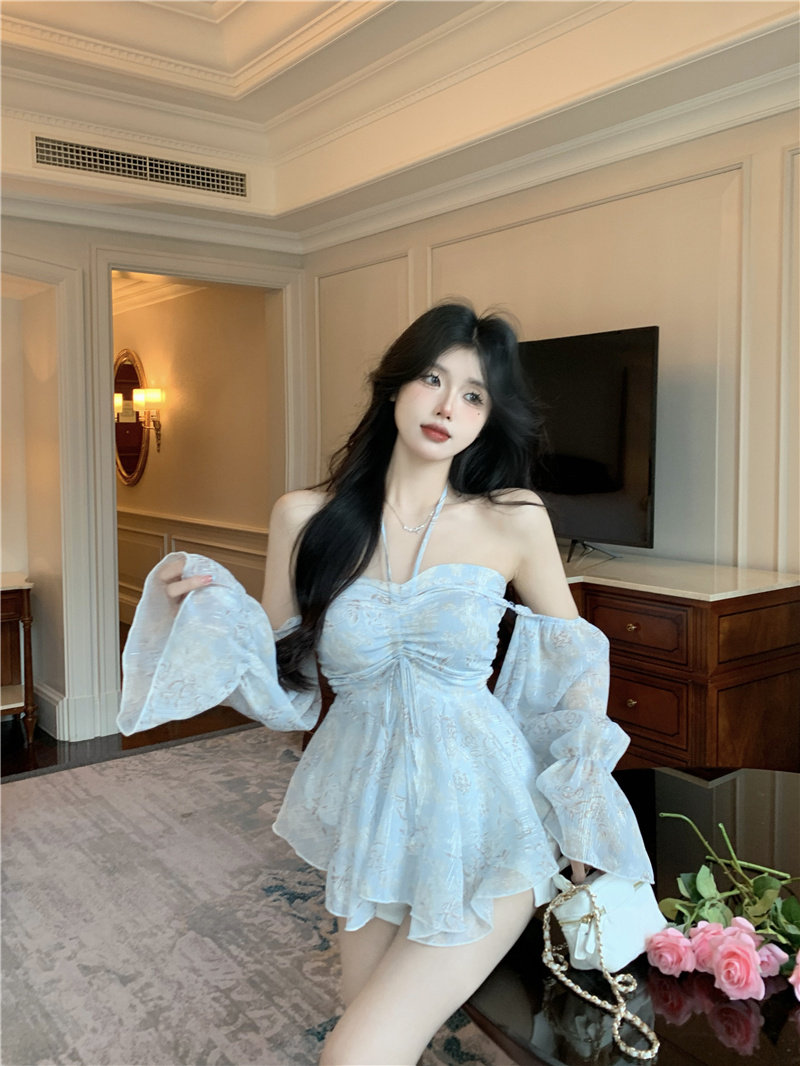 Милая весенняя рубашка, съемный лонгслив, дизайнерские нарукавники, открытые плечи, тренд сезона