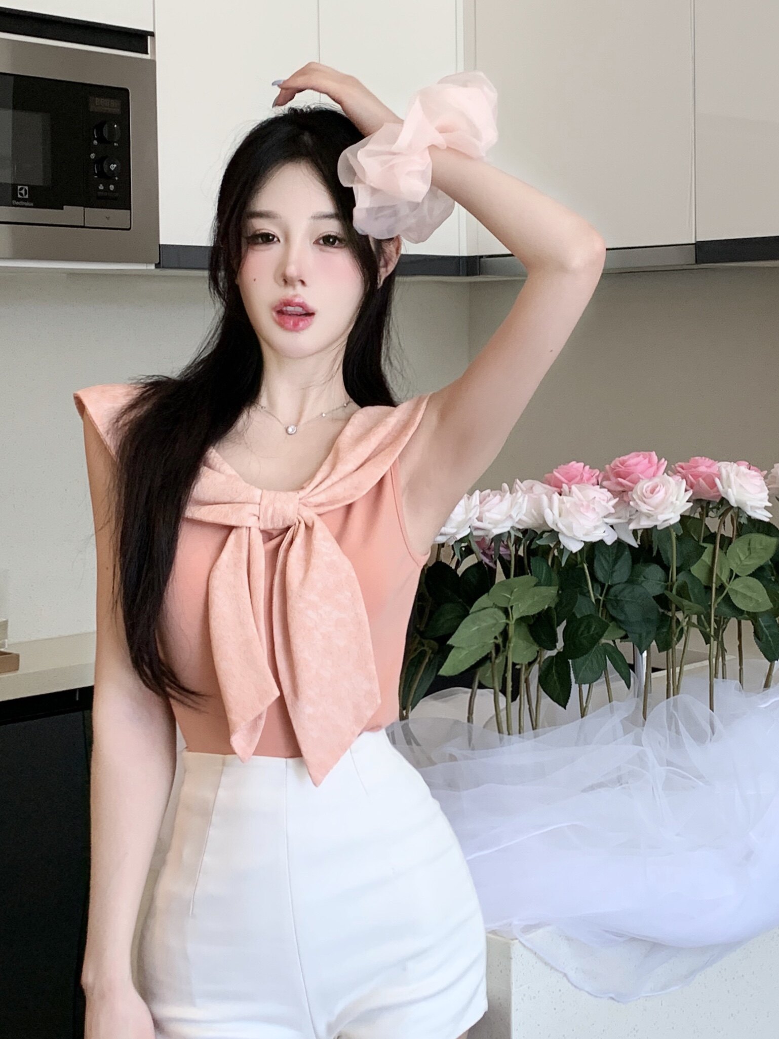 Накидка, дизайнерская футболка с бантиком без рукавов, короткий комплект, французский стиль, тренд сезона