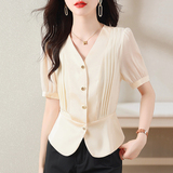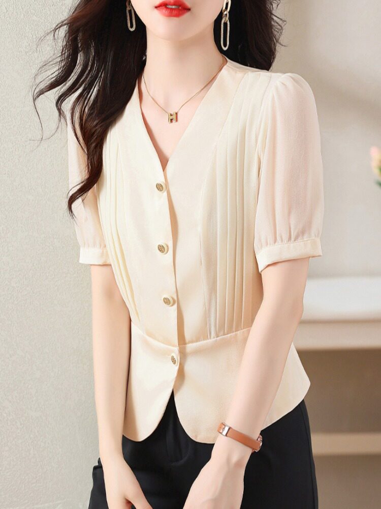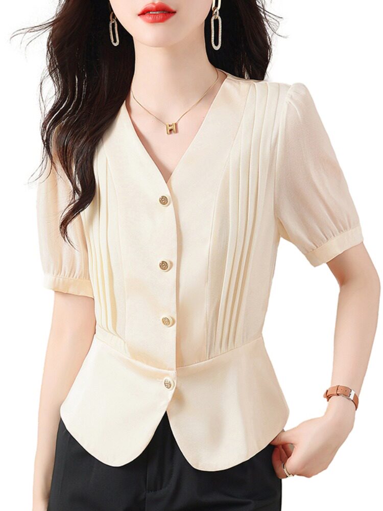 Летняя рубашка, французский стиль, V-образный вырез, короткий рукав, городской стиль