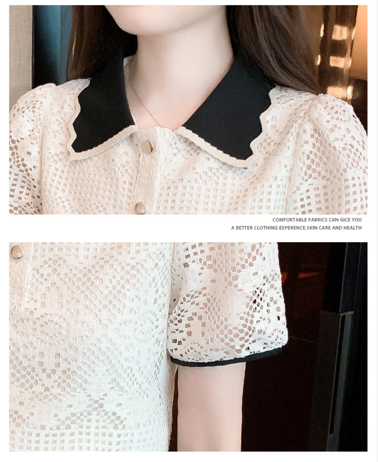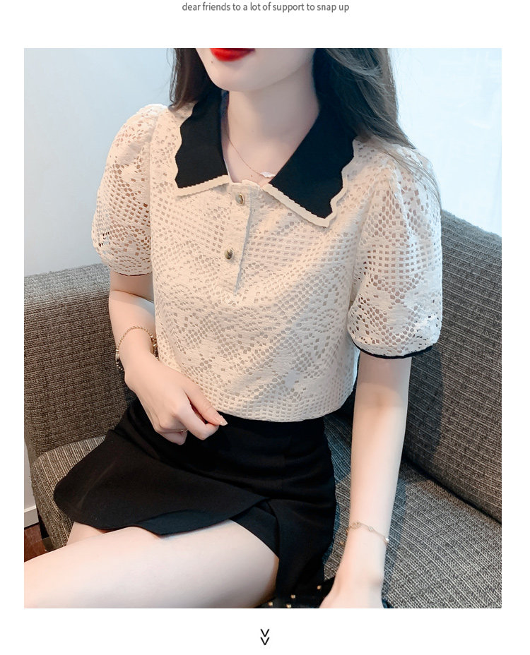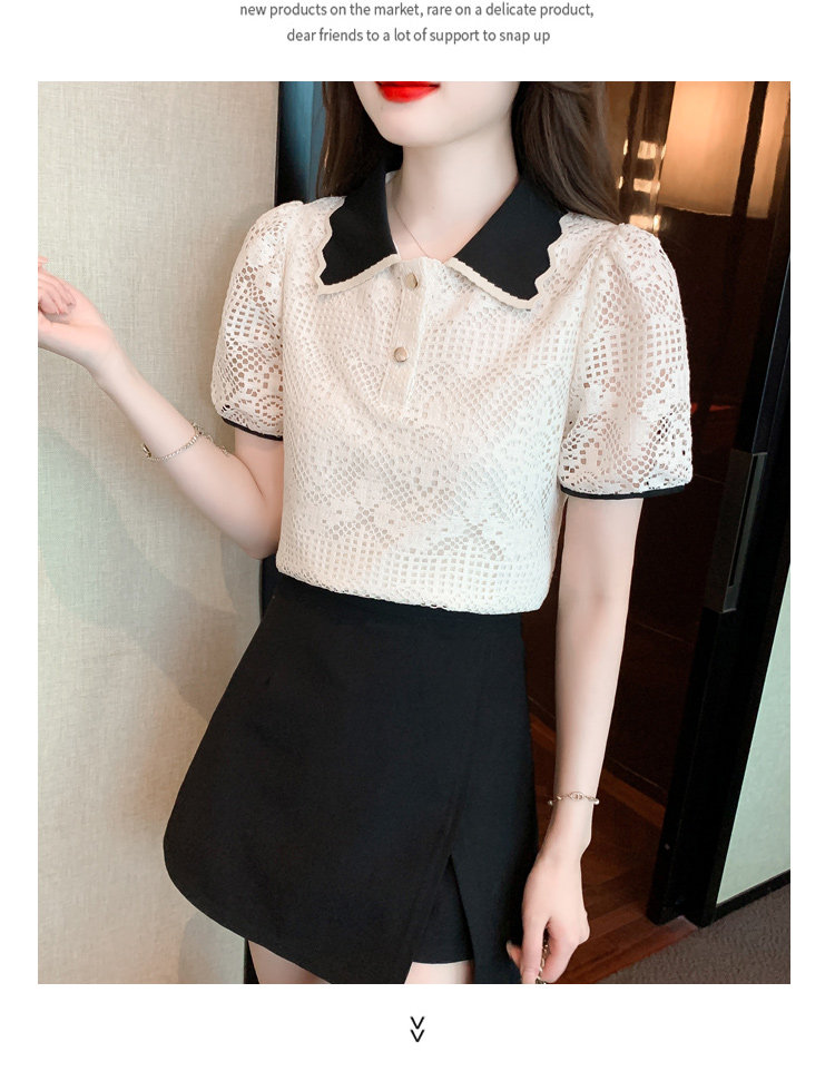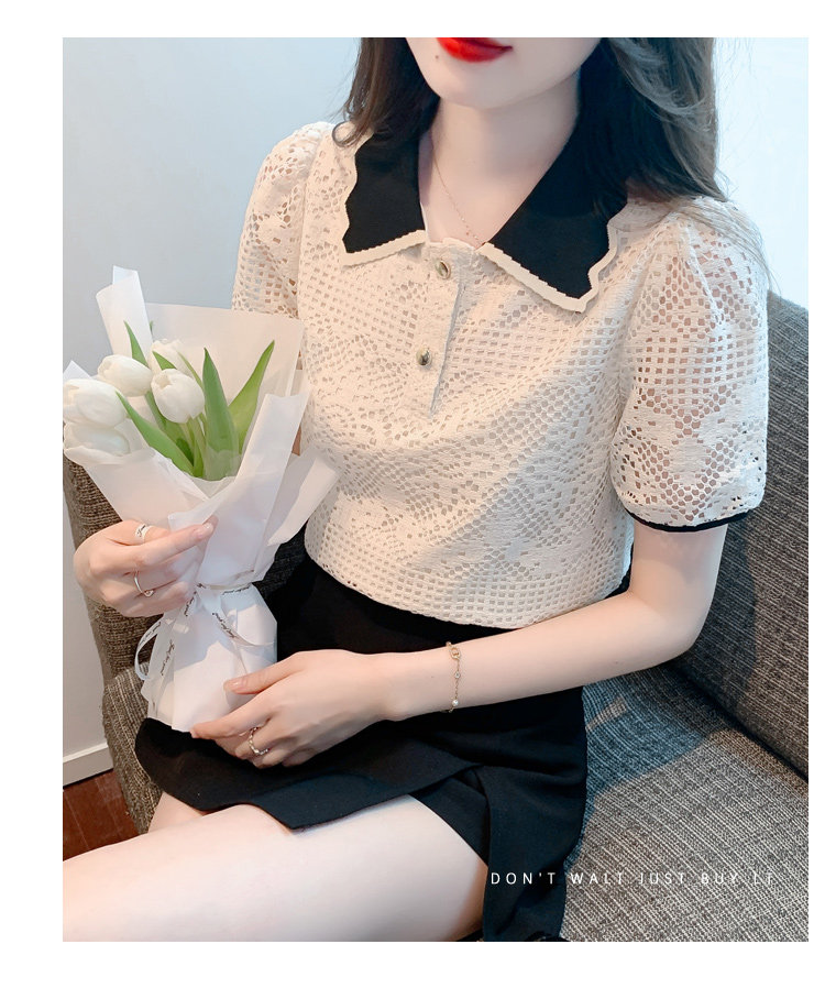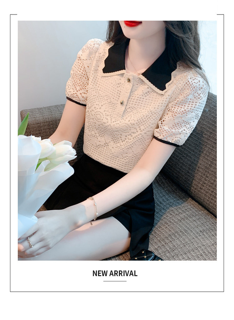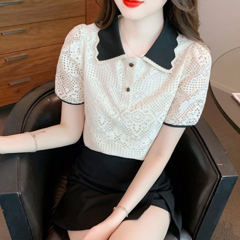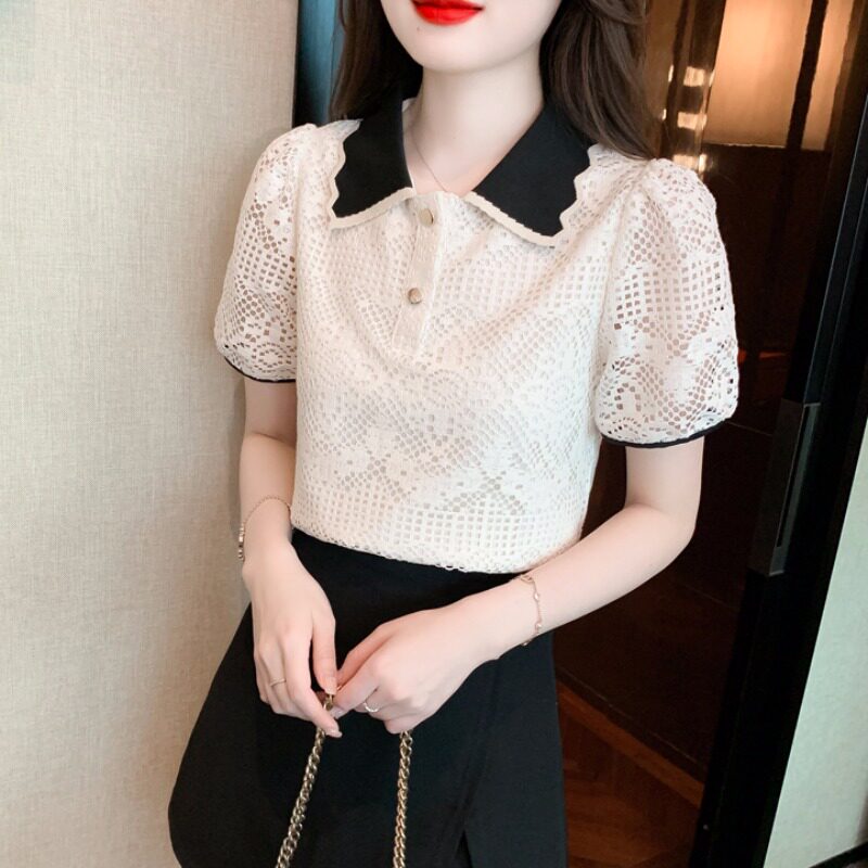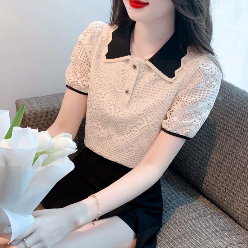 Кукла, рубашка, кружевная футболка, кукольный воротник, короткий рукав, новая коллекция, рукава фонарики, в западном стиле