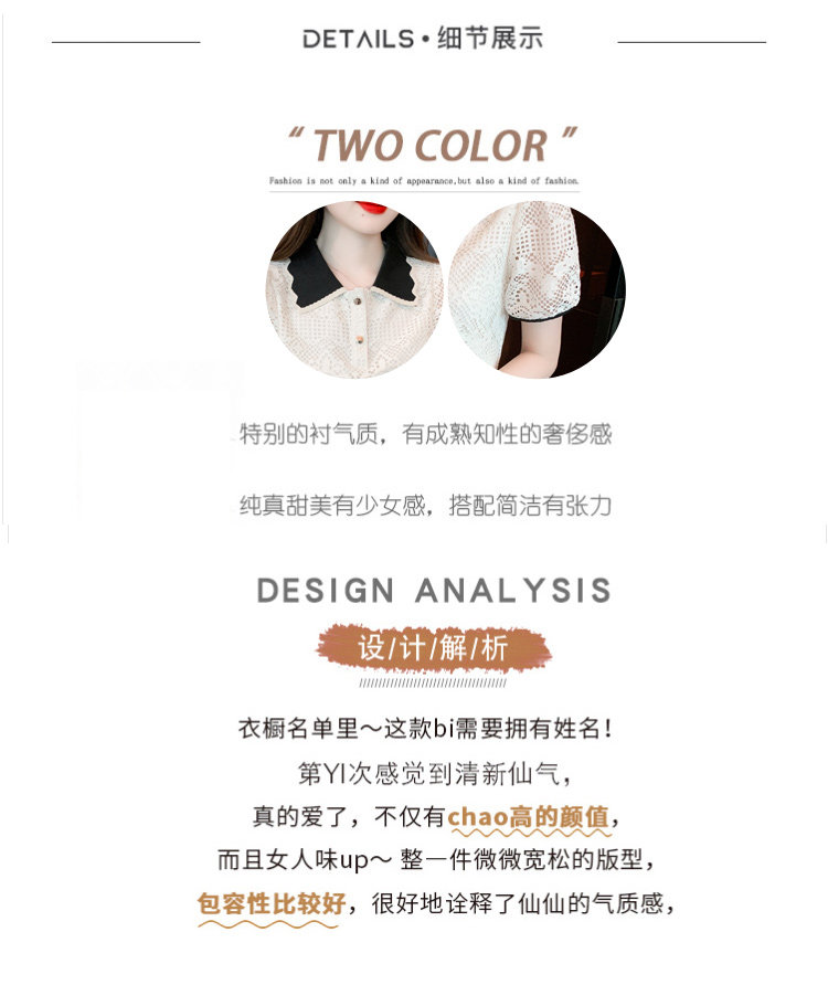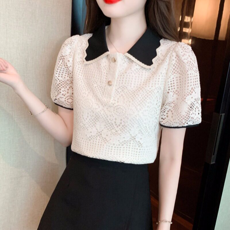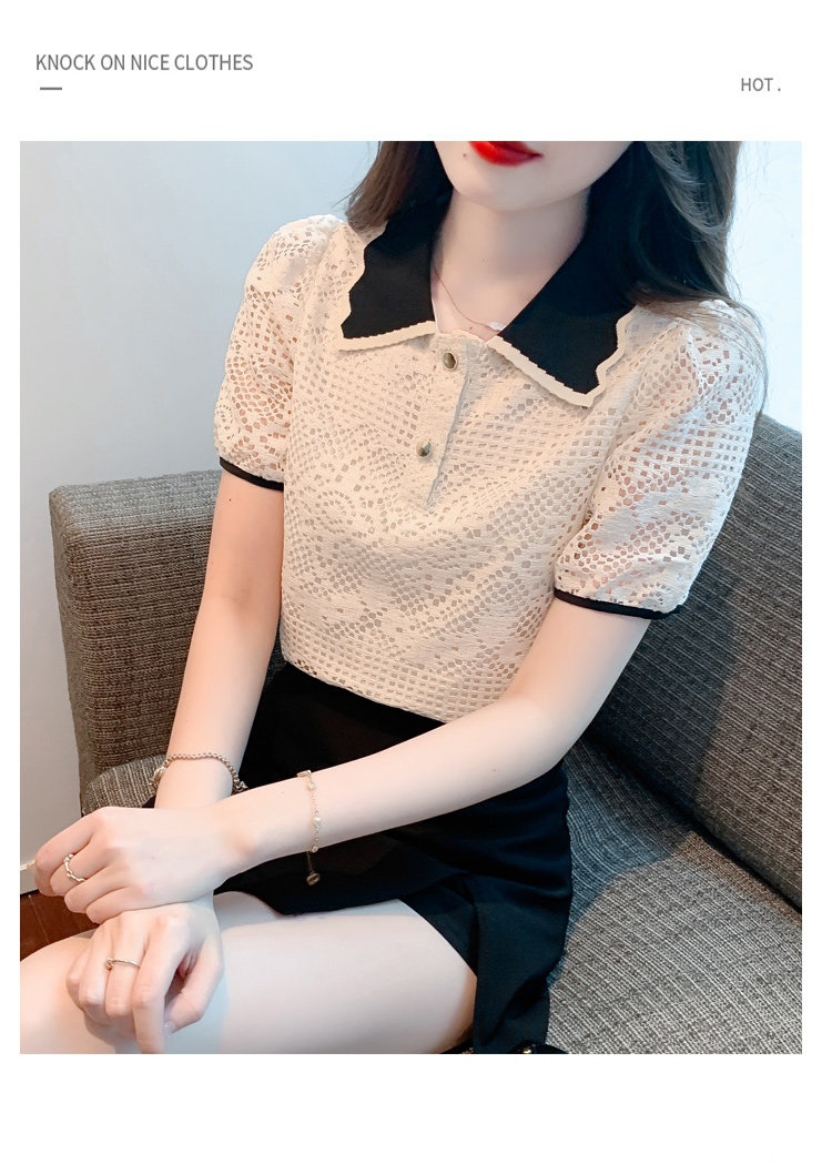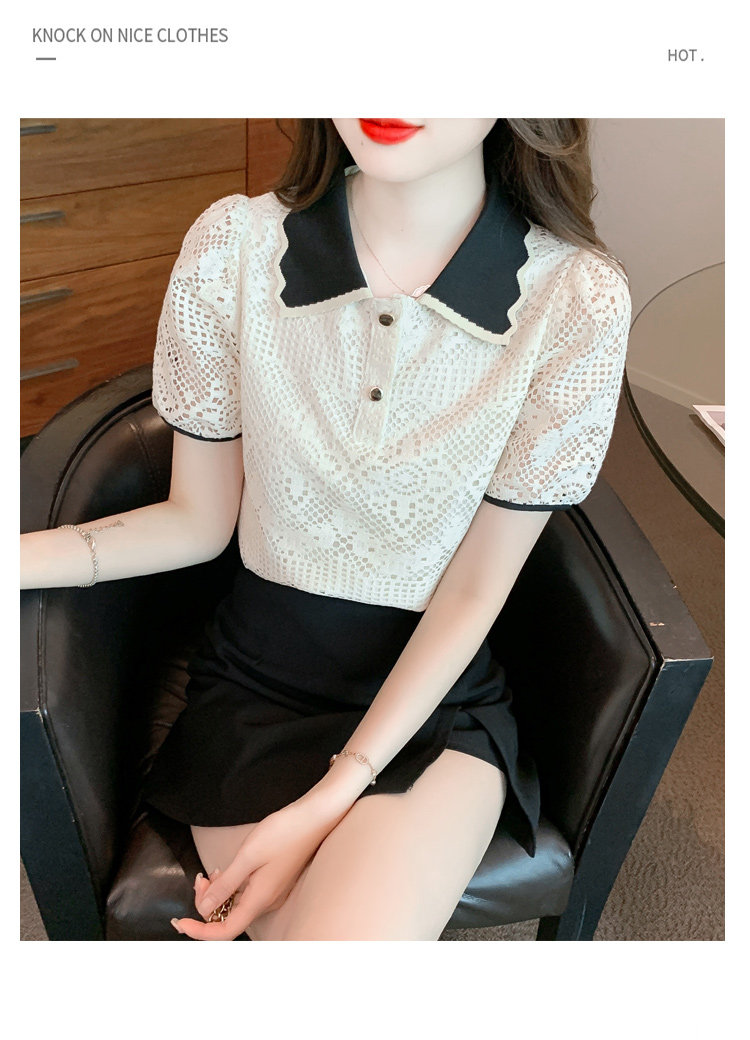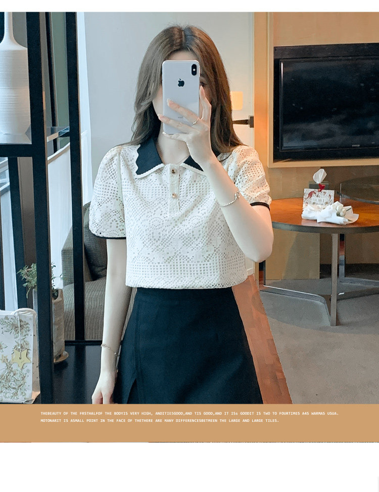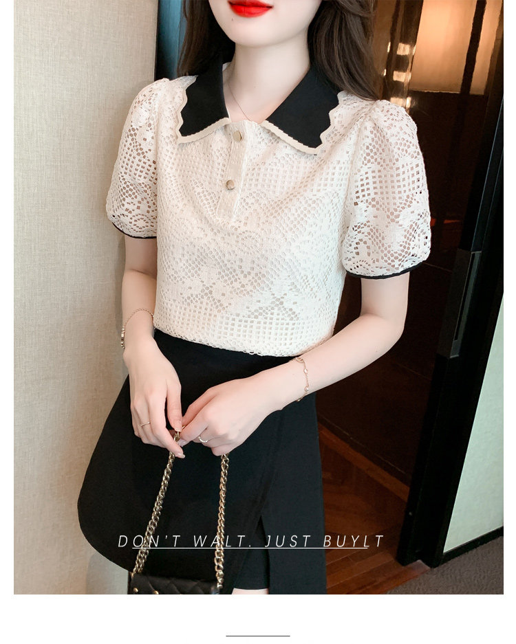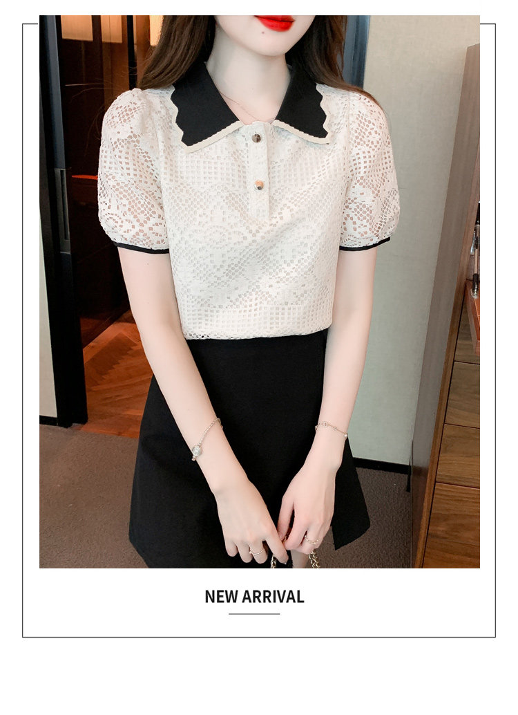 Кукла, рубашка, кружевная футболка, кукольный воротник, короткий рукав, новая коллекция, рукава фонарики, в западном стиле