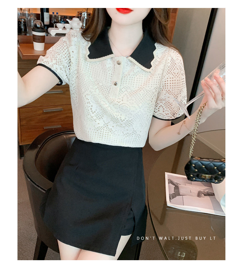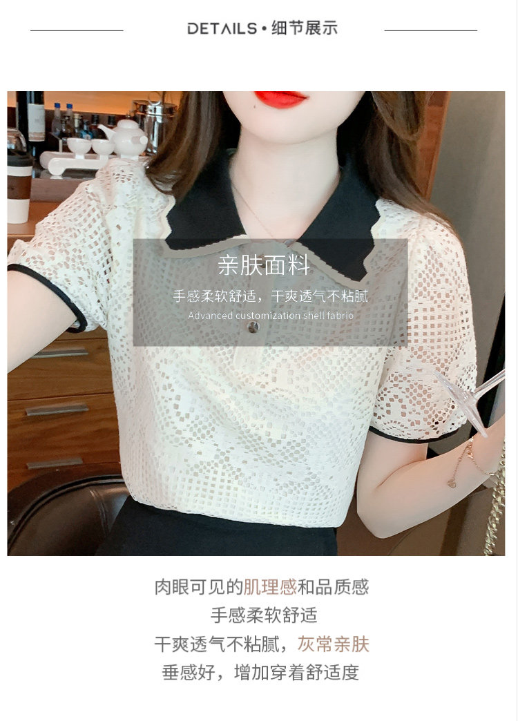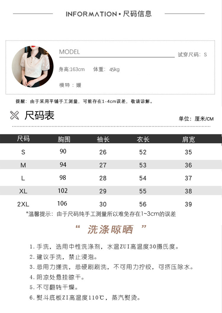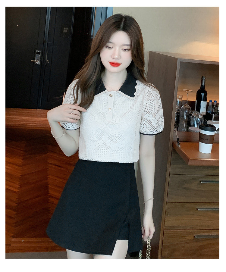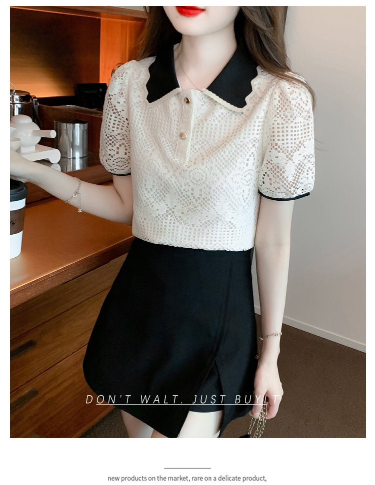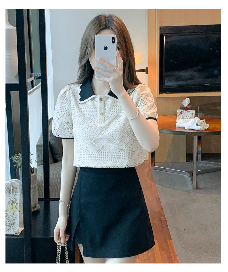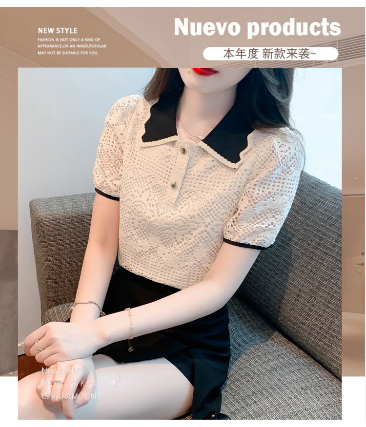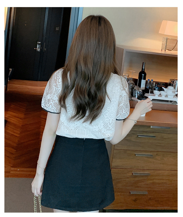 Кукла, рубашка, кружевная футболка, кукольный воротник, короткий рукав, новая коллекция, рукава фонарики, в западном стиле
