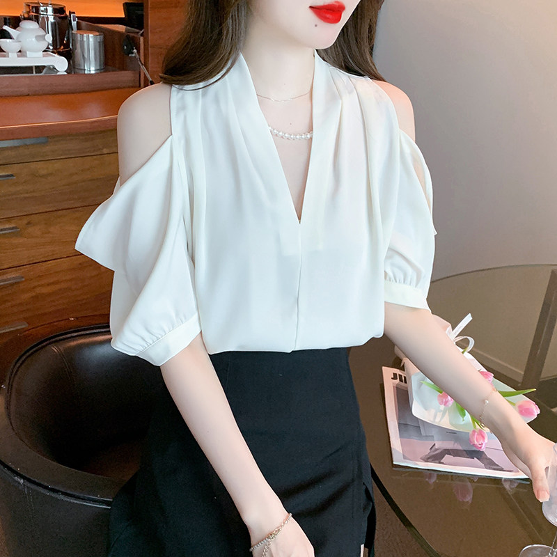Летняя рубашка, дизайнерская летняя одежда, V-образный вырез, короткий рукав, 2023, тренд сезона