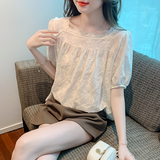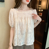 Tide, рубашка, летняя одежда, шифоновая футболка с круглым воротником для отдыха, коллекция 2023, в западном стиле, свободный крой