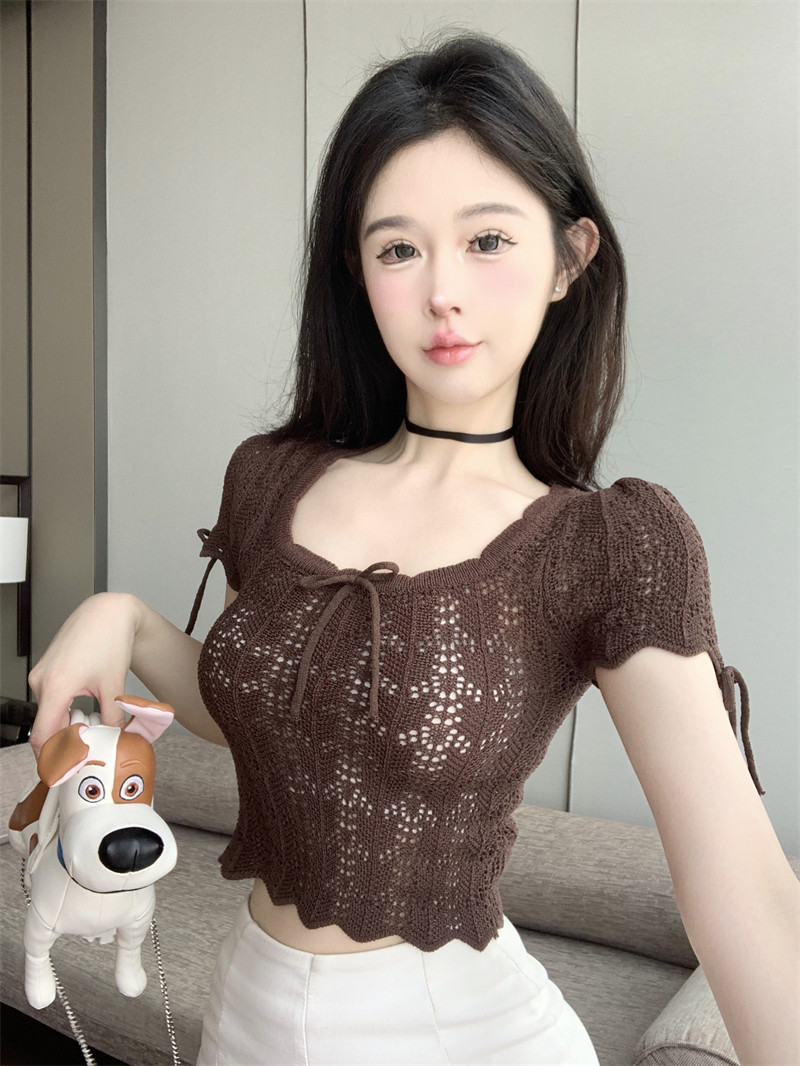 Трикотажная дизайнерская сексуальная короткая футболка с коротким рукавом, французский стиль, тренд сезона