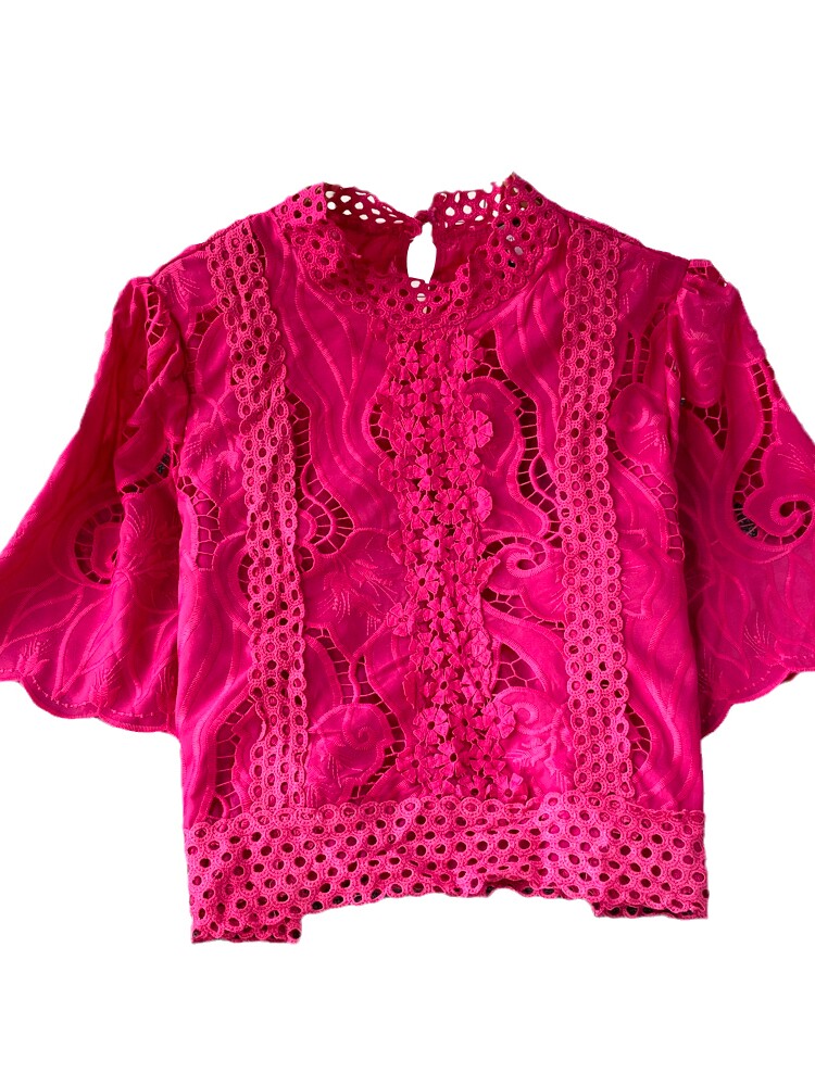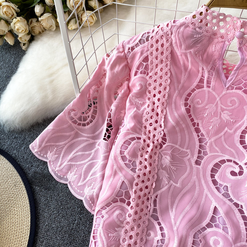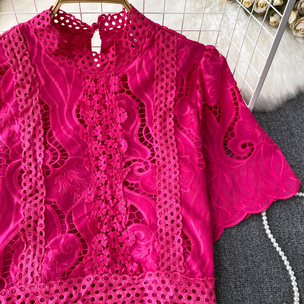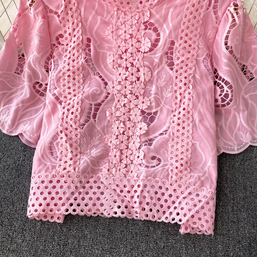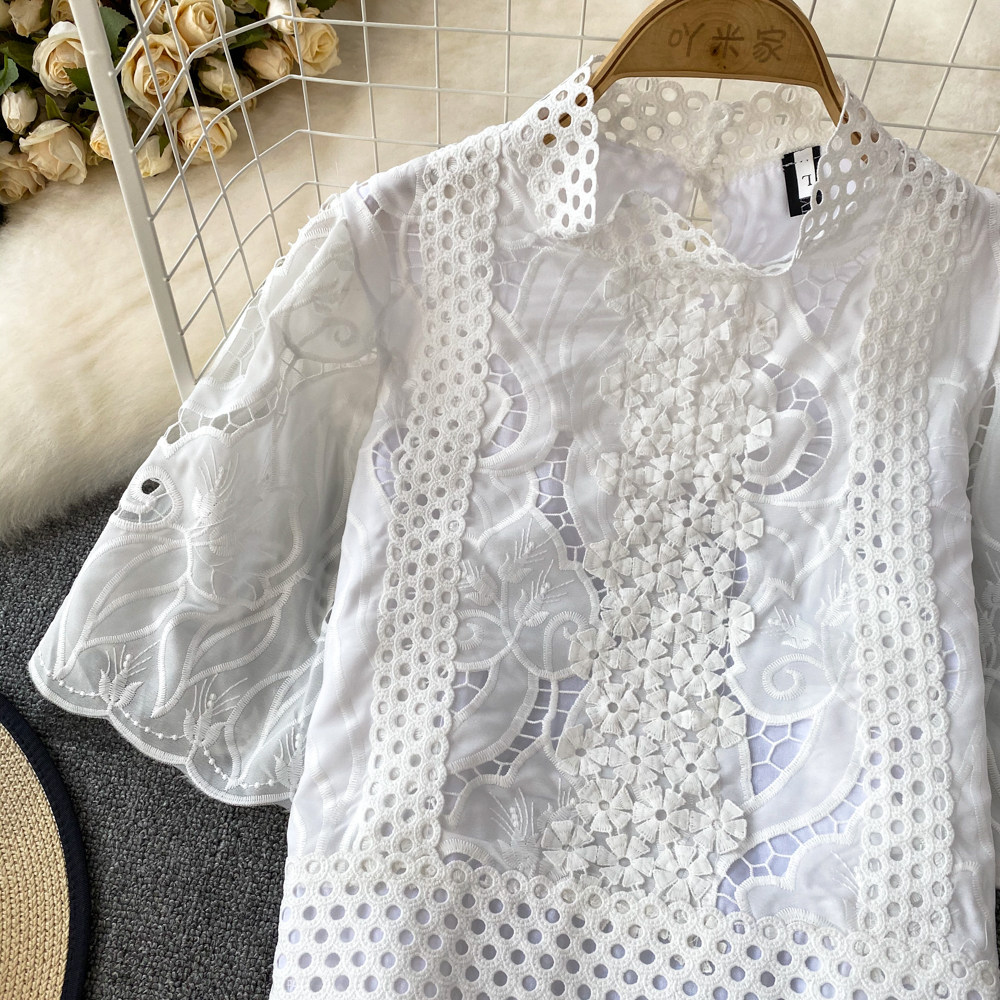 Французская ретро-ретро-темперамент автономный воротник полой крючок кружевную рубашку, чтобы вы выглядели тонкими и высокими талией короткие повседневные и универсальные топы