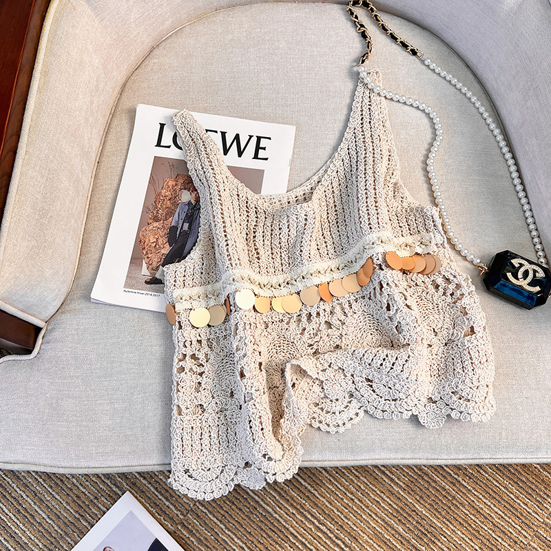 | Цвет: | Абрикосовая дизайнерская тонкая летняя одежда без рукавов, коллекция 2023, тренд сезона, изысканный стиль, подходит для подростков, красивая спина, в американском стиле |