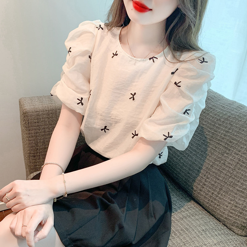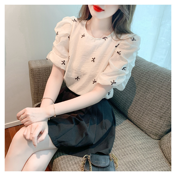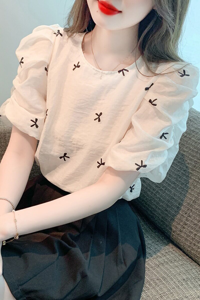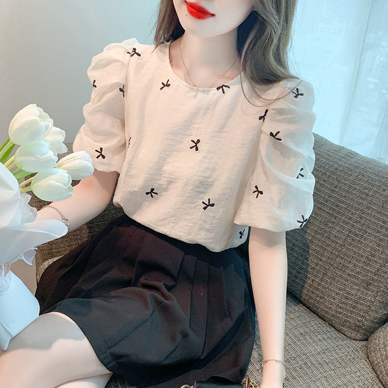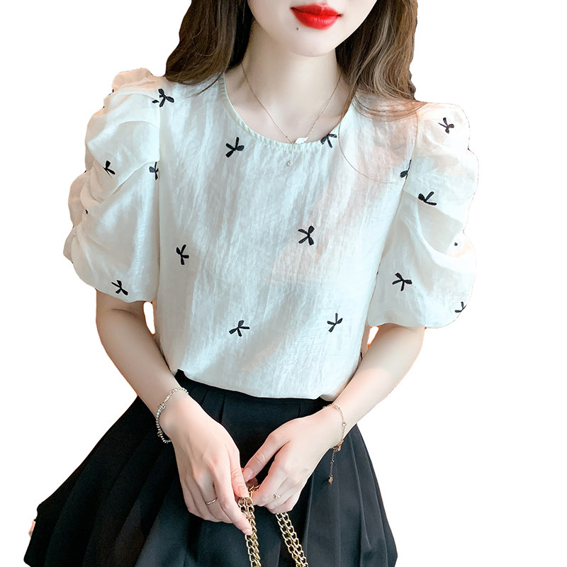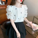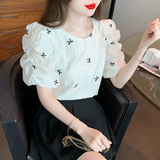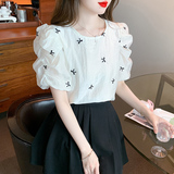 Французская вышитая рукав с рукавом кружевную шифоновую рубашку для женщин 2023 Летний новый стиль тонкий малый топ для женщин